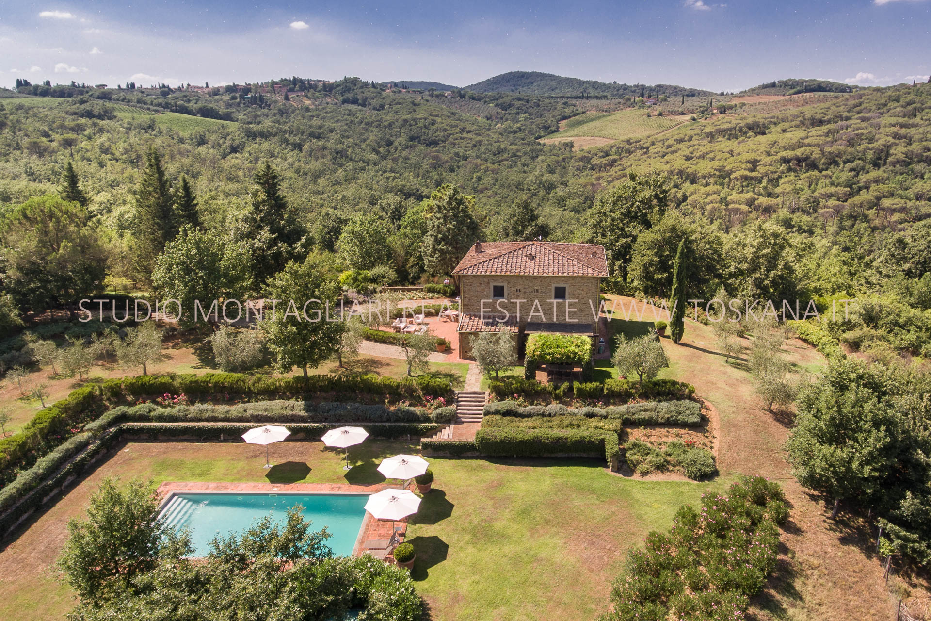 Questo casale curato si trova, a soli 10 minuti di auto da Firenze, nel Chianti, in una posizione appartata e tranquilla con vista sulla bellissima città rinascimentale.
