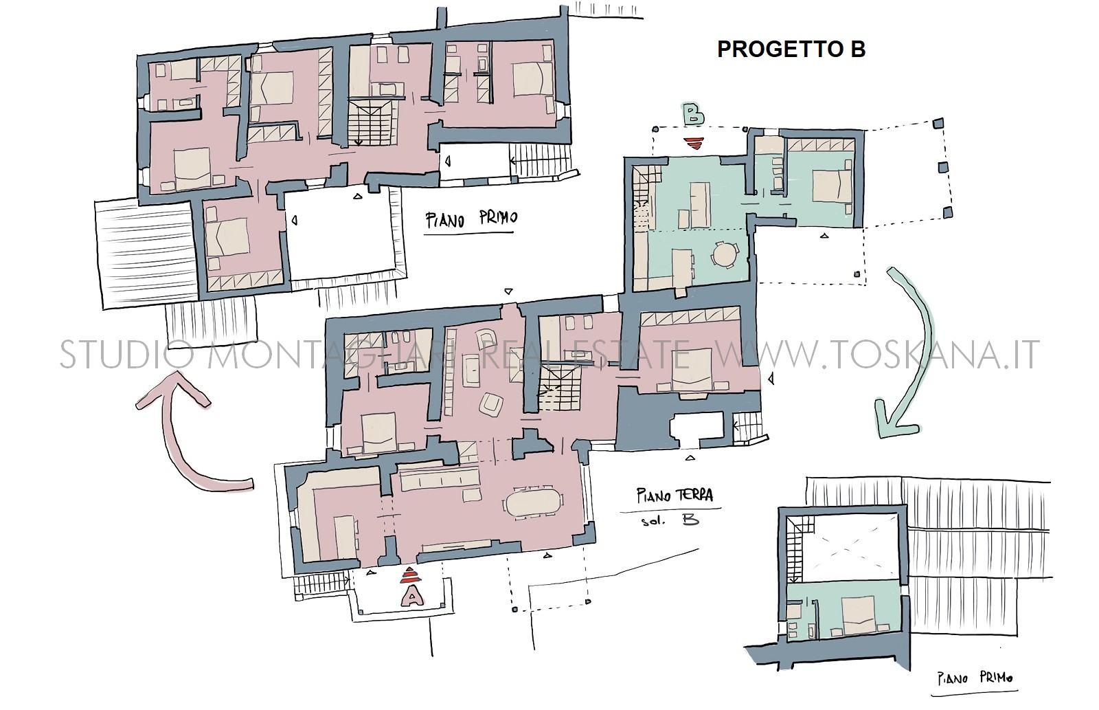 È disponibile un progetto per unire gli appartamenti in un'unica grande casa, nonché un appartamento per gli ospiti con 6+2 o 8+2 camere da letto. Il costo stimato è di circa € 5-600.000.