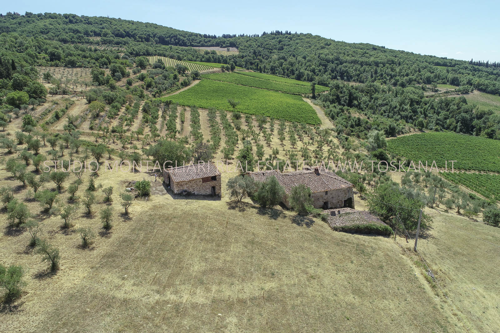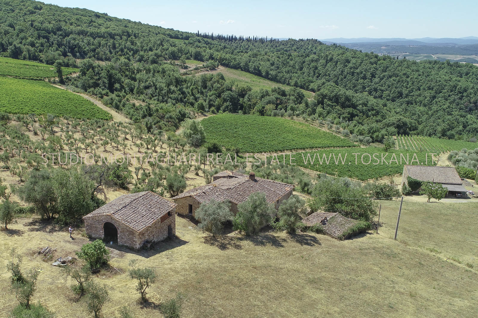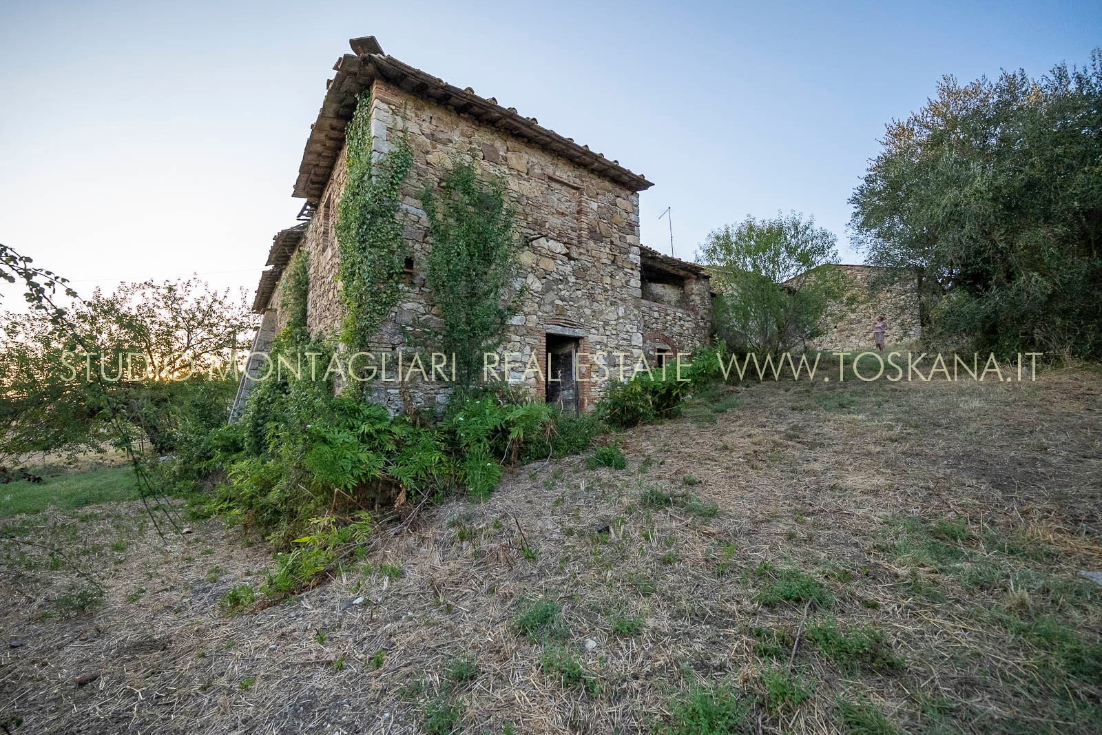 Questa tipica colonica in pietra, completamente da ristrutturare, si trova molto vicino alla famosa e affascinante cittadina di Castellina in Chianti. La proprietà è situata nel cuore di vigneti e uliveti, in una zona assolutamente tranquilla, alla fine di una strada sterrata privata. Dalla proprietà, ricca di fascino, si può godere di una magnifica vista verso sud, ovest e su San Gimignano. Il complesso è composto dalla casa padronale in pietra, con una superficie lorda di circa 630 metri quadrati, e da due annessi separati con superfici rispettivamente di 190 e 96 metri quadrati.