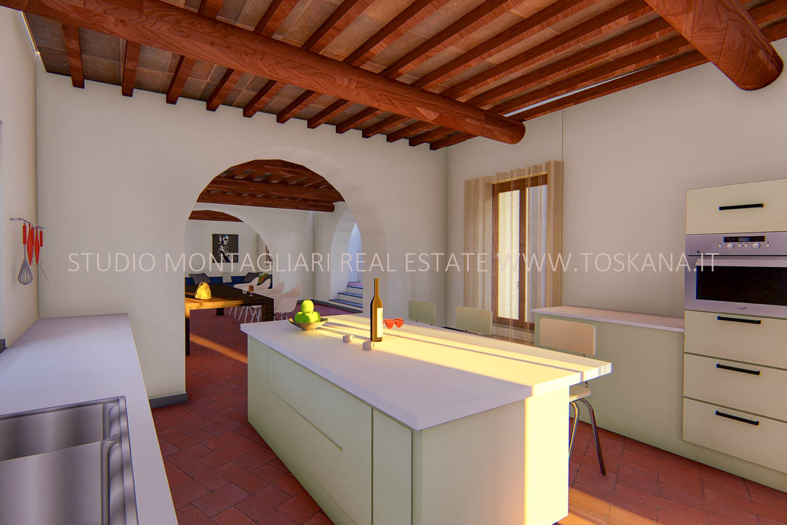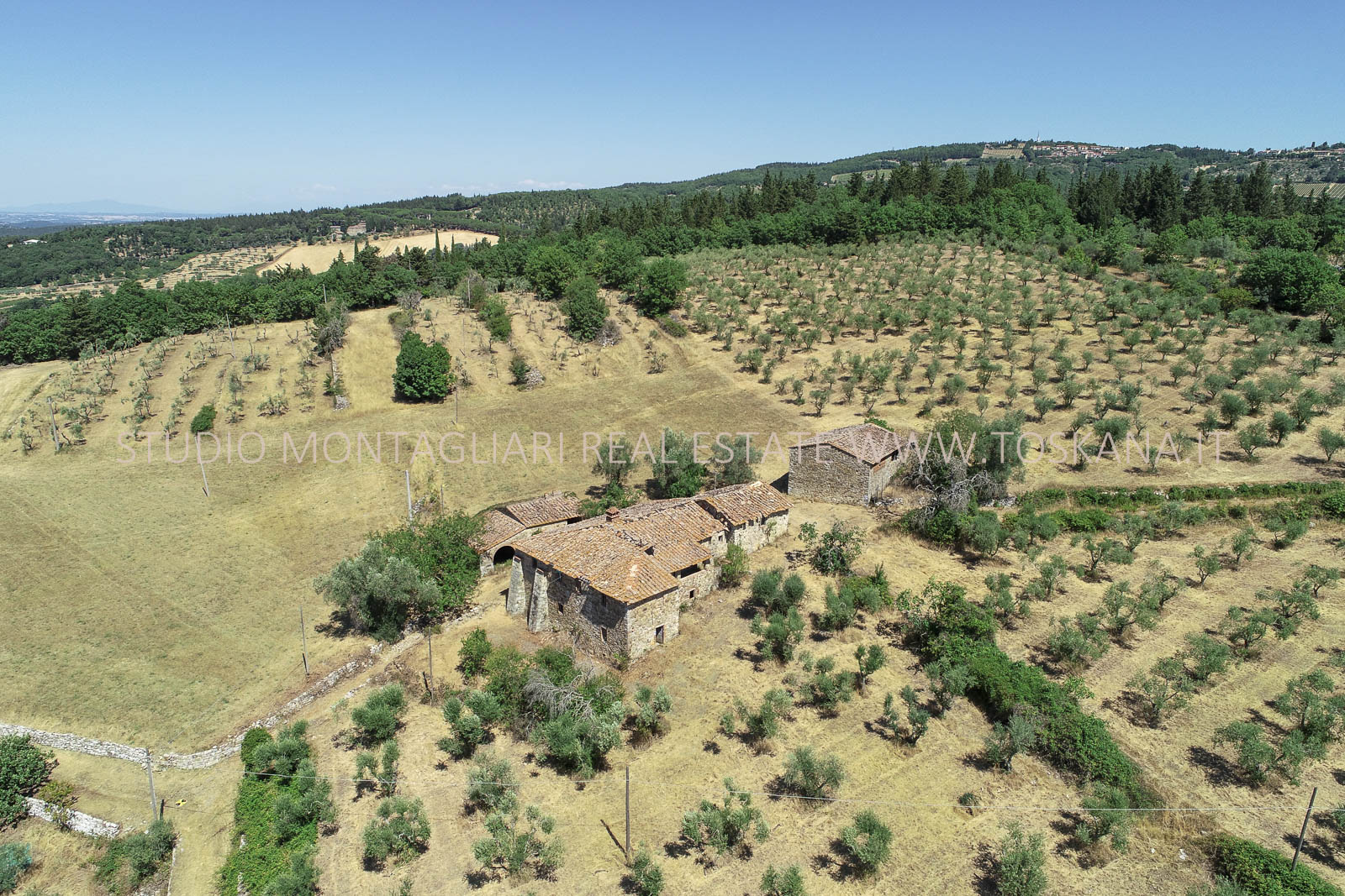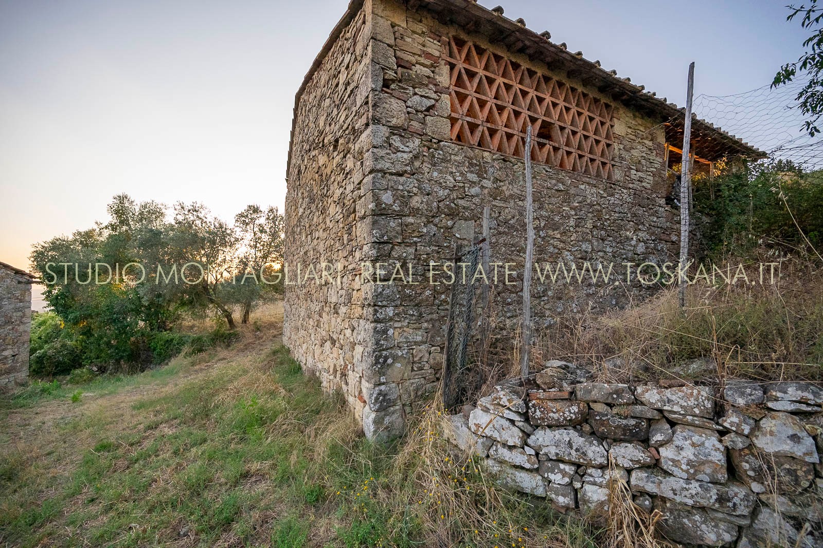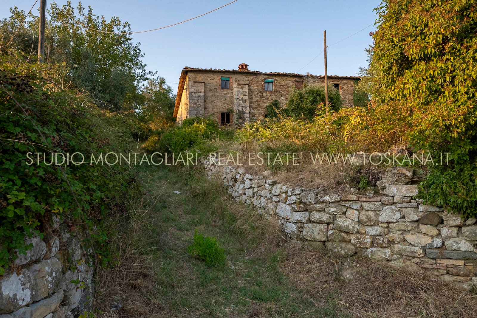 Questa tipica colonica in pietra, completamente da ristrutturare, si trova molto vicino alla famosa e affascinante cittadina di Castellina in Chianti. La proprietà è situata nel cuore di vigneti e uliveti, in una zona assolutamente tranquilla, alla fine di una strada sterrata privata. Dalla proprietà, ricca di fascino, si può godere di una magnifica vista verso sud, ovest e su San Gimignano. Il complesso è composto dalla casa padronale in pietra, con una superficie lorda di circa 630 metri quadrati, e da due annessi separati con superfici rispettivamente di 190 e 96 metri quadrati.