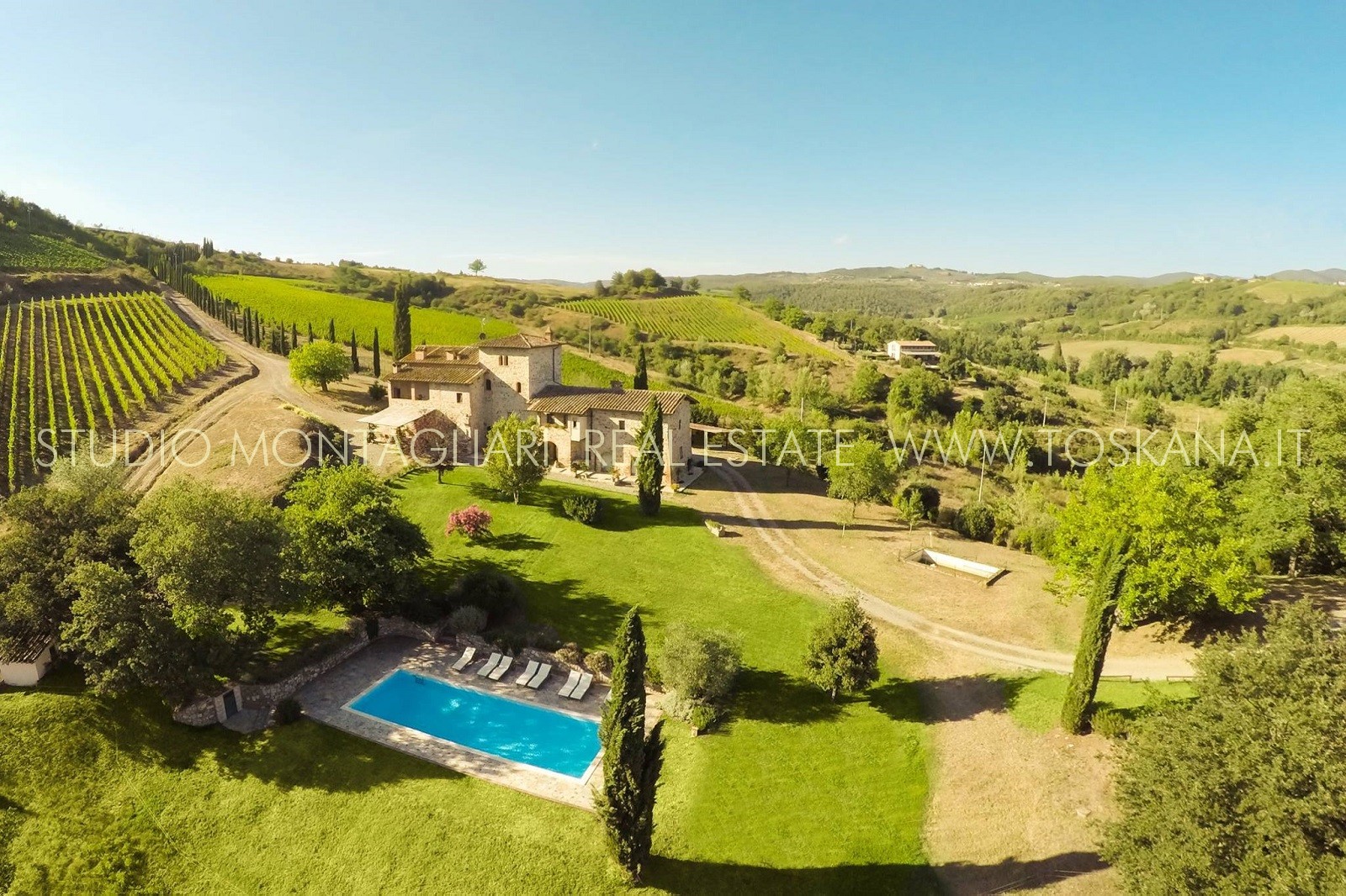 Il terreno, di complessivi 26 ettari è composto da 5,6 ha di vigneto IGT, uliveto e bosco. Attualmente è stato dato in lavorazione a terzi ma vi è la possibilità di costruire la propria cantina.