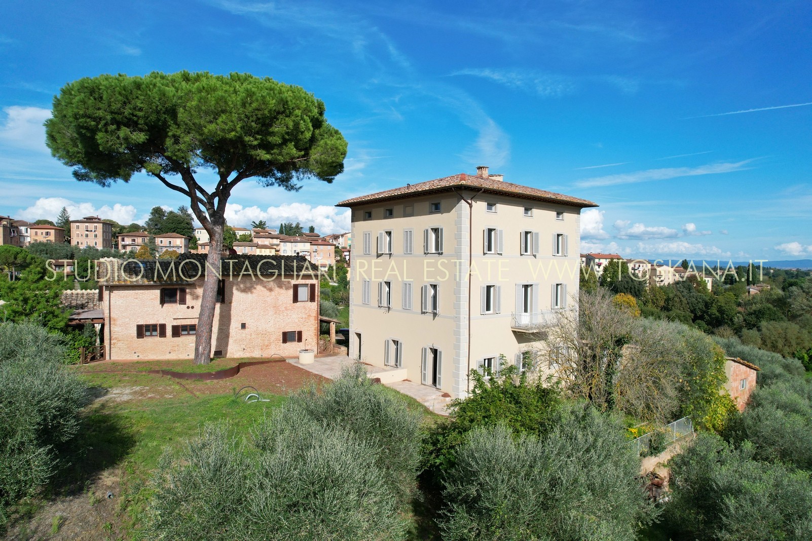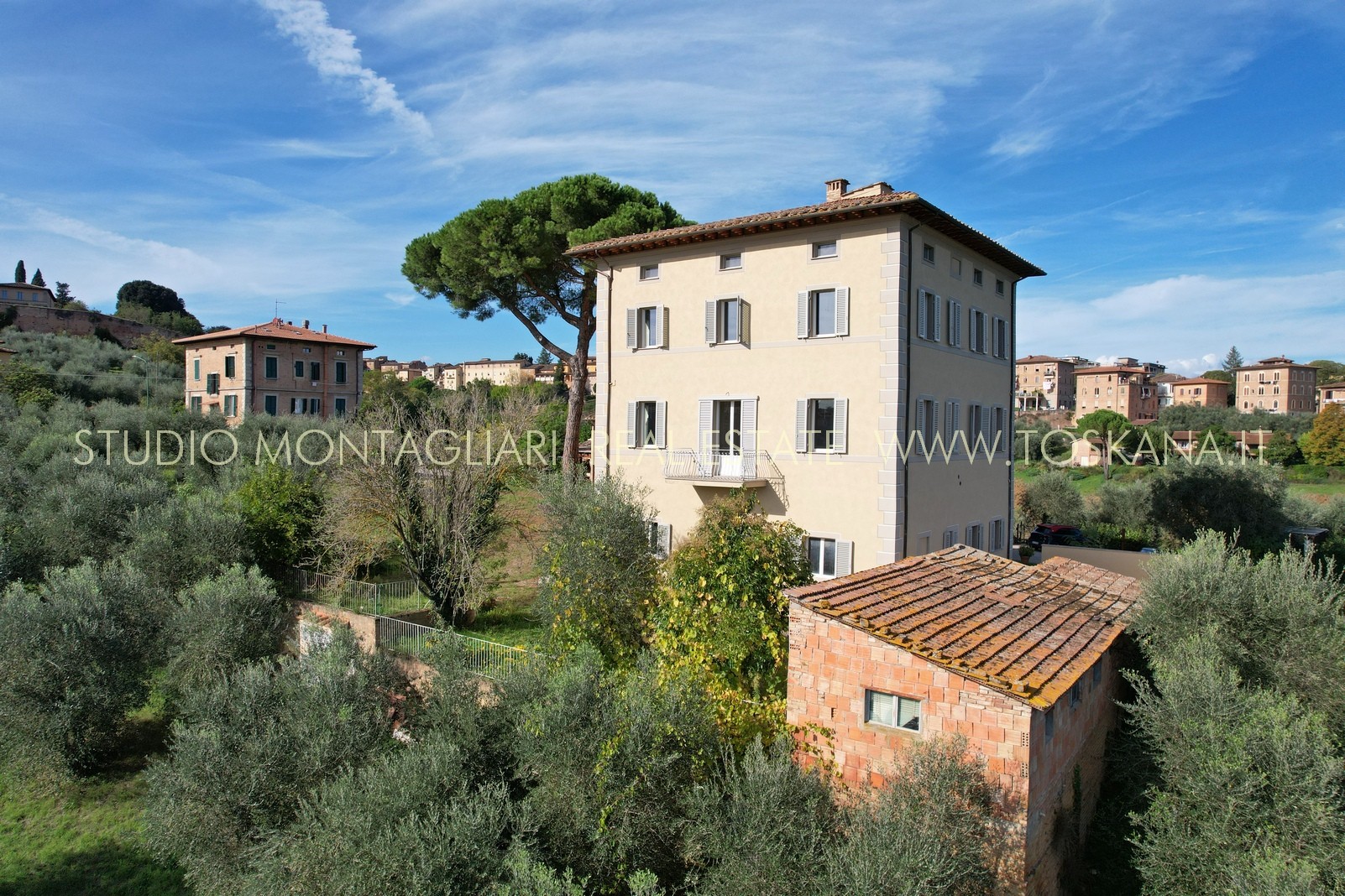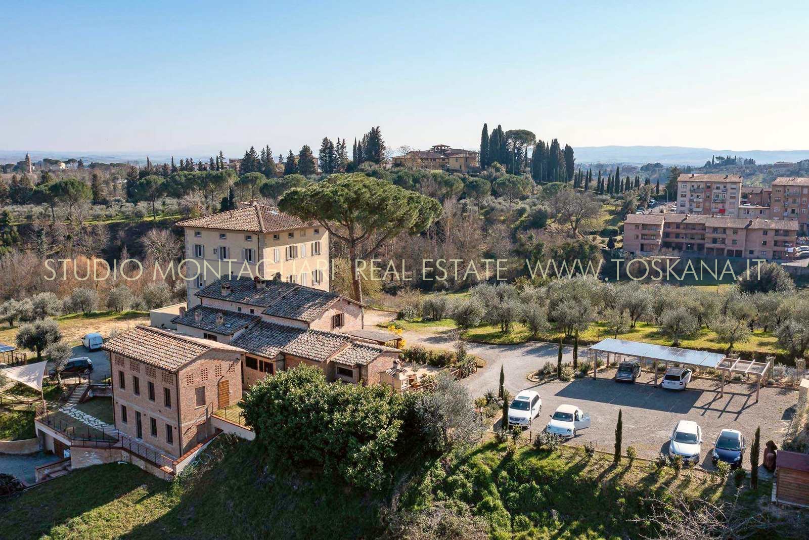 Villa indipendente all’interno di un piccolo borgo a due passi dal centro di Siena, completamente ristrutturata con ampio parcheggio, giardino con progetto approvato per realizzare la piscina. La proprietà si sviluppa su tre piani oltre mansarda, serviti da ascensore.
