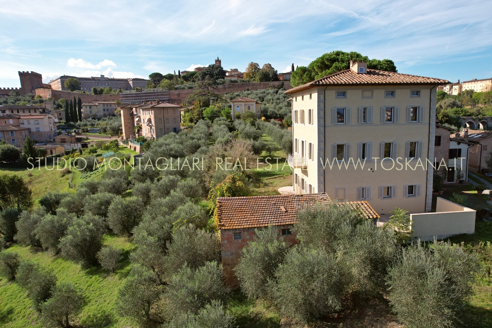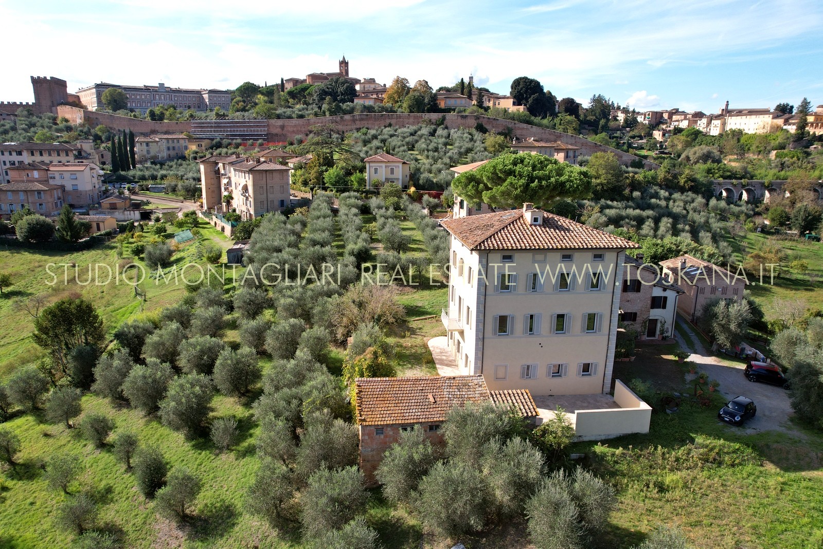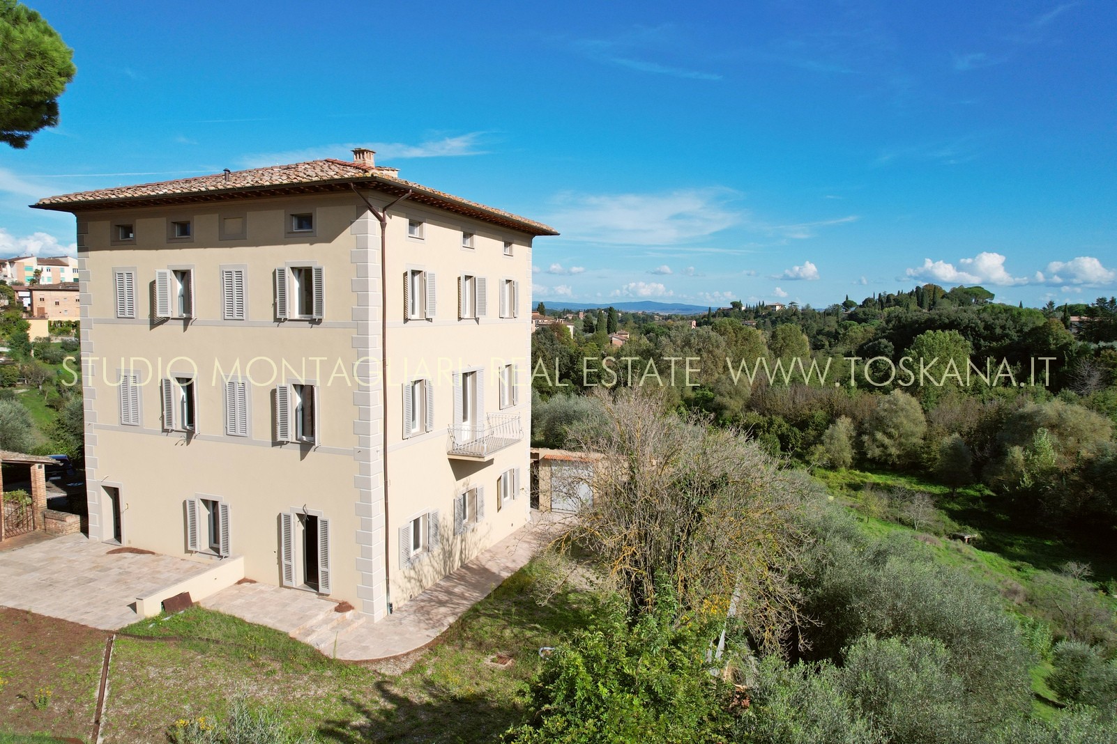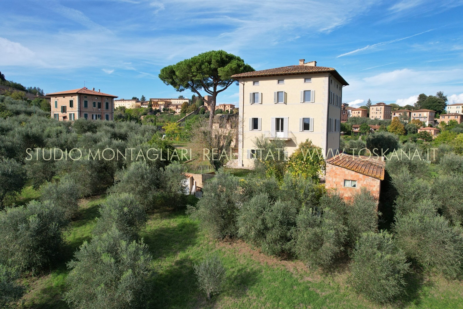 Villa indipendente all’interno di un piccolo borgo a due passi dal centro di Siena, completamente ristrutturata con ampio parcheggio, giardino con progetto approvato per realizzare la piscina. La proprietà si sviluppa su tre piani oltre mansarda, serviti da ascensore.
