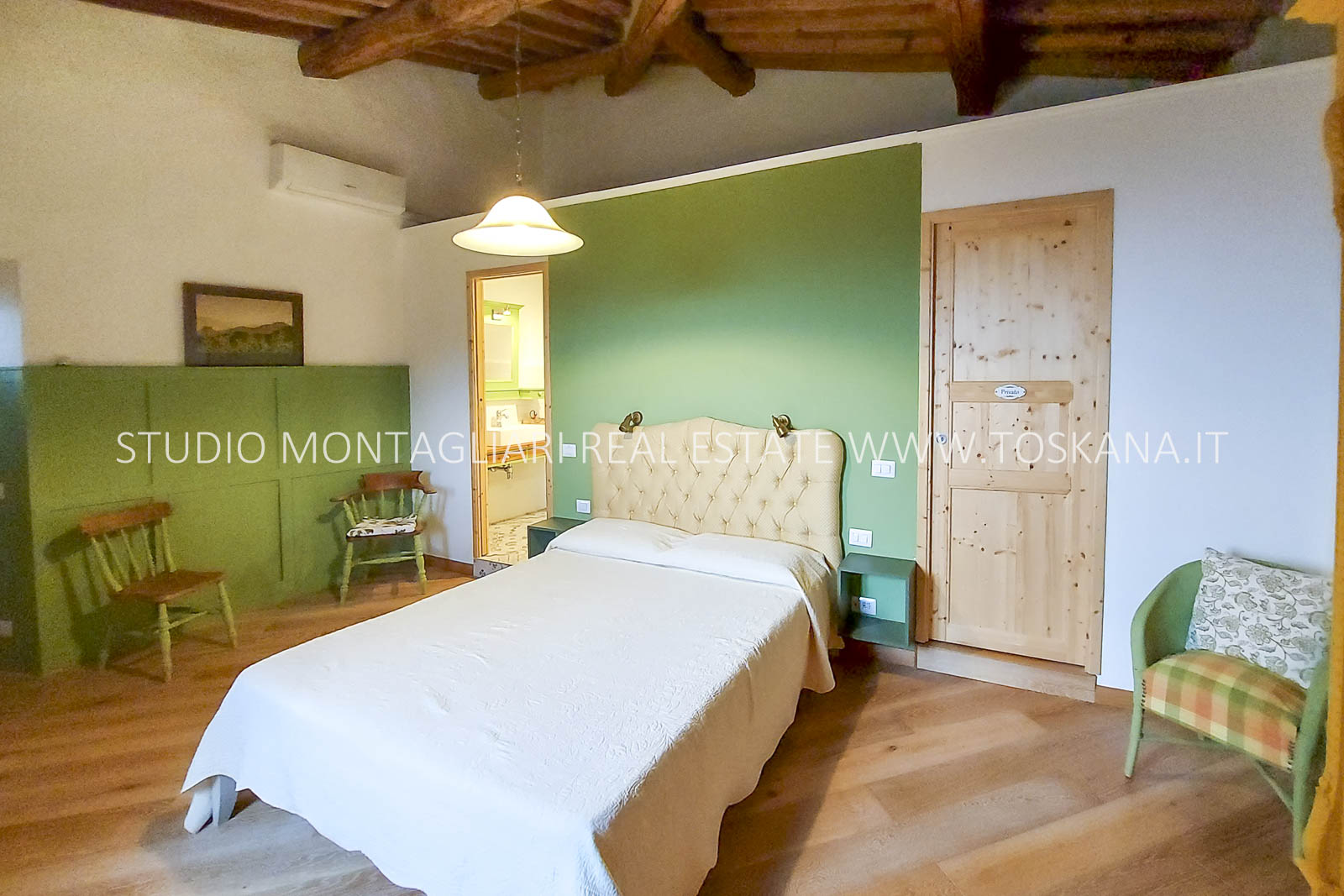 La struttura si presenta in ottime condizioni, con interventi mirati che hanno preservato l’autenticità del casale valorizzandone al contempo funzionalità e comfort. I pavimenti in cotto, le travi in legno, i camini originali e i materiali tradizionali conferiscono un fascino senza tempo.