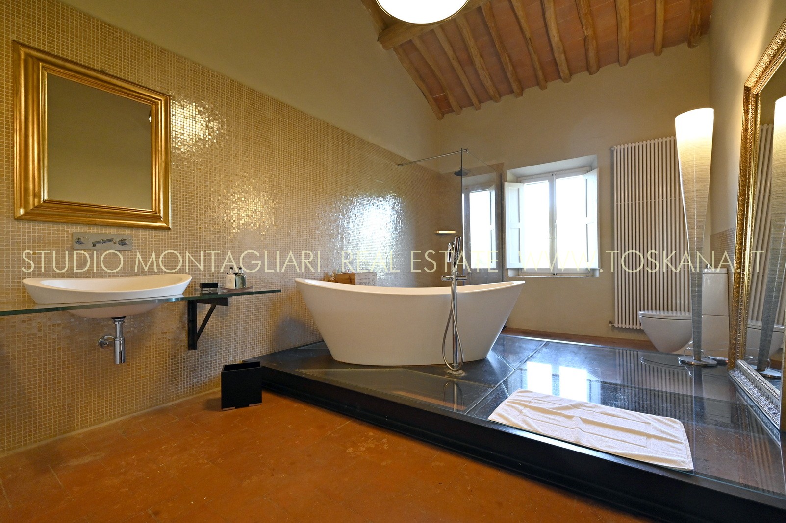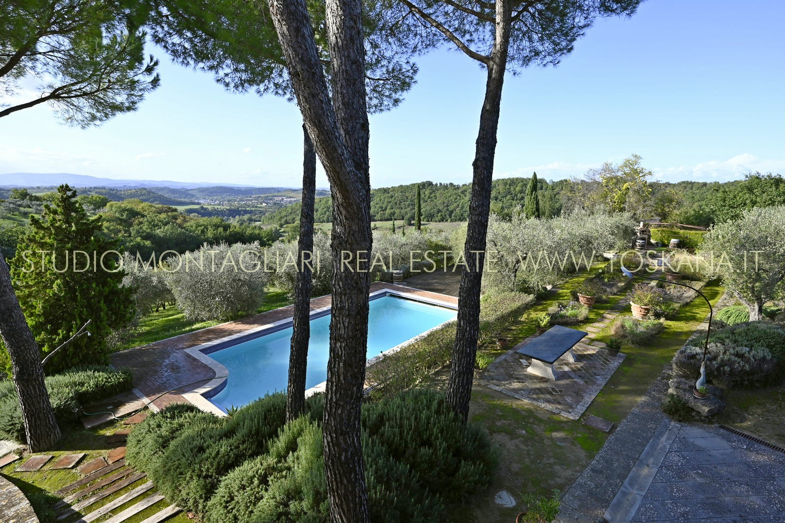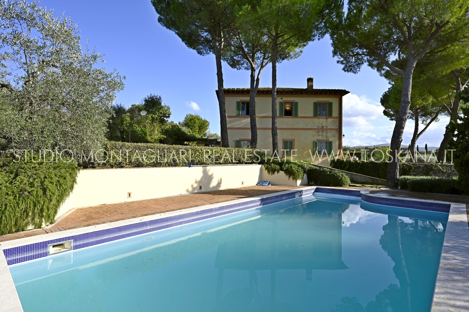 Eleganza e semplicità distinguono questo podere. Dalla proprietà si gode di una fantastica vista sulle dolci colline ricoperte di uliveti e vigneti. È possibile vedere le torri di San Gimignano, la Manhattan del Medioevo, oggi patrimonio mondiale dell'UNESCO.Si arriva in un ampio cortile rialzato e bordato da alti pini mediterranei.