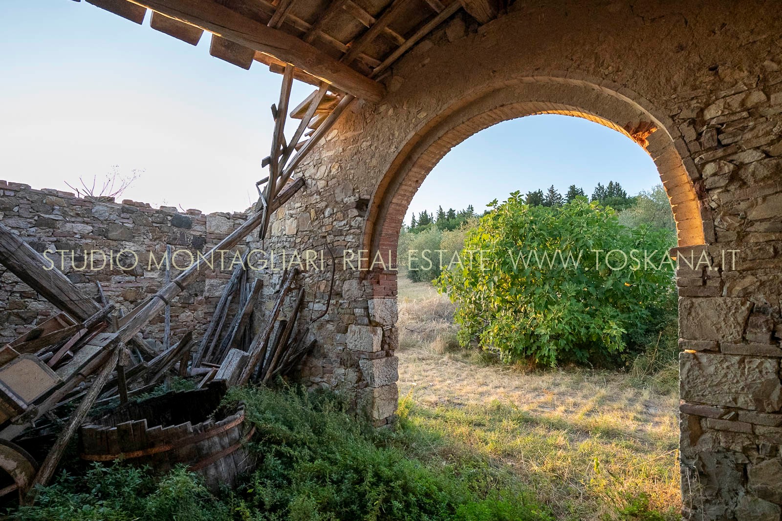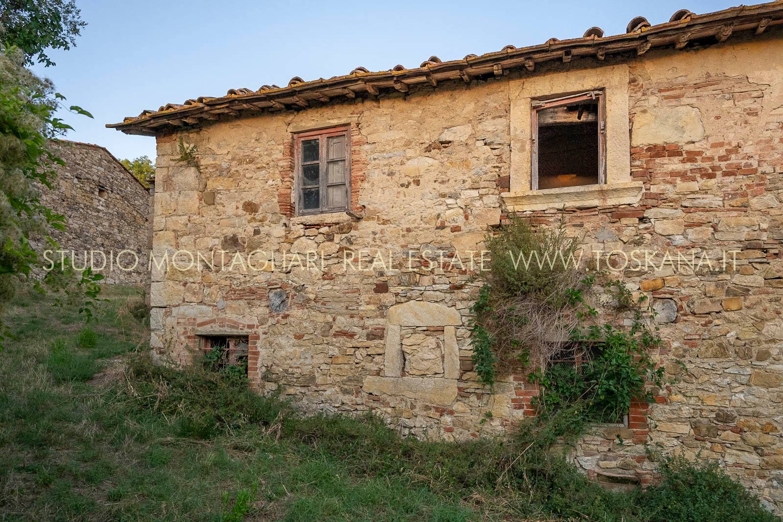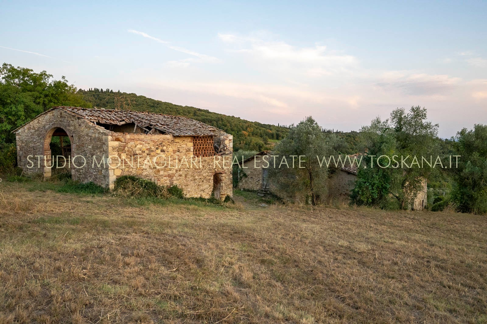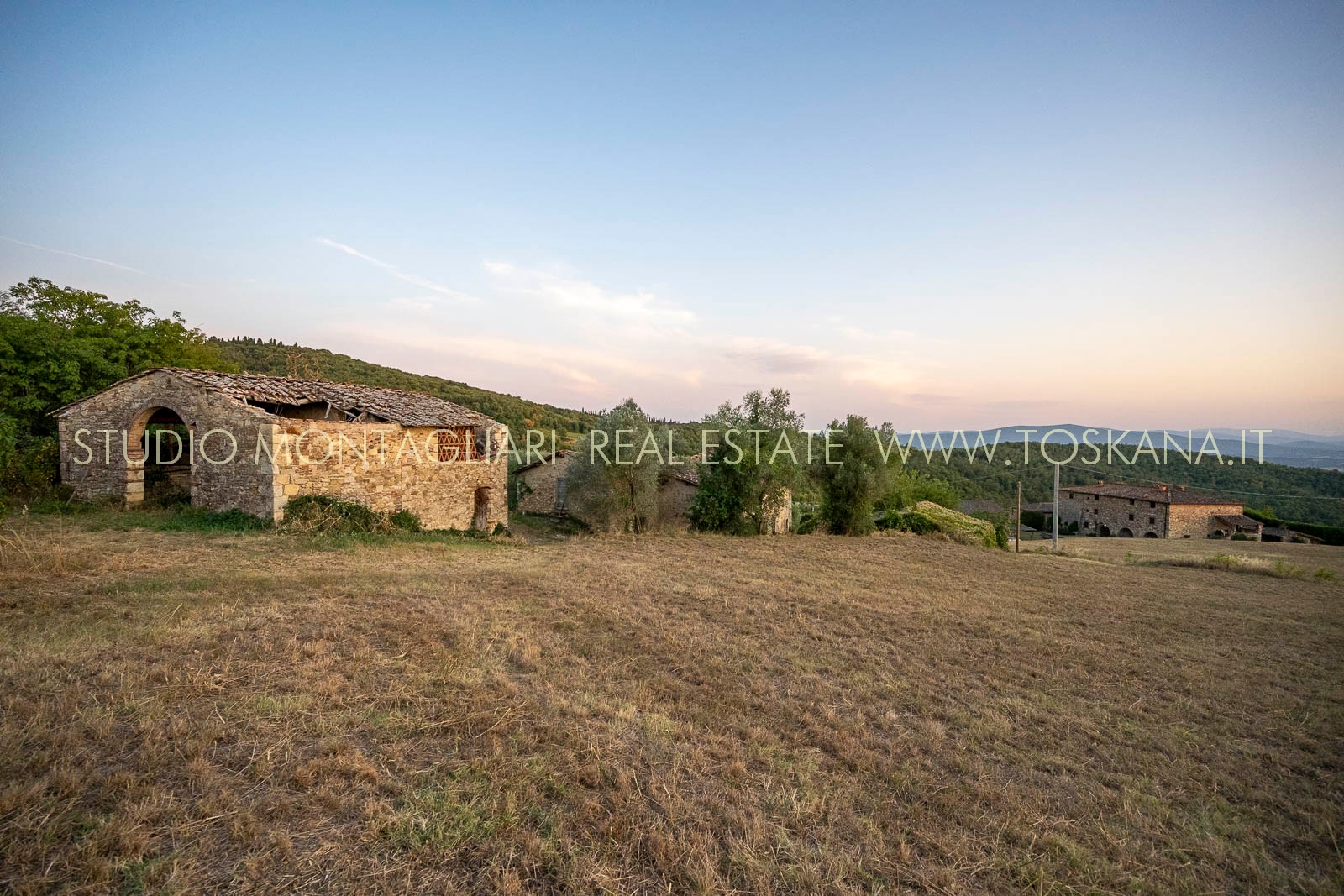 Questa tipica colonica in pietra, completamente da ristrutturare, si trova molto vicino alla famosa e affascinante cittadina di Castellina in Chianti. La proprietà è situata nel cuore di vigneti e uliveti, in una zona assolutamente tranquilla, alla fine di una strada sterrata privata. Dalla proprietà, ricca di fascino, si può godere di una magnifica vista verso sud, ovest e su San Gimignano. Il complesso è composto dalla casa padronale in pietra, con una superficie lorda di circa 630 metri quadrati, e da due annessi separati con superfici rispettivamente di 190 e 96 metri quadrati.