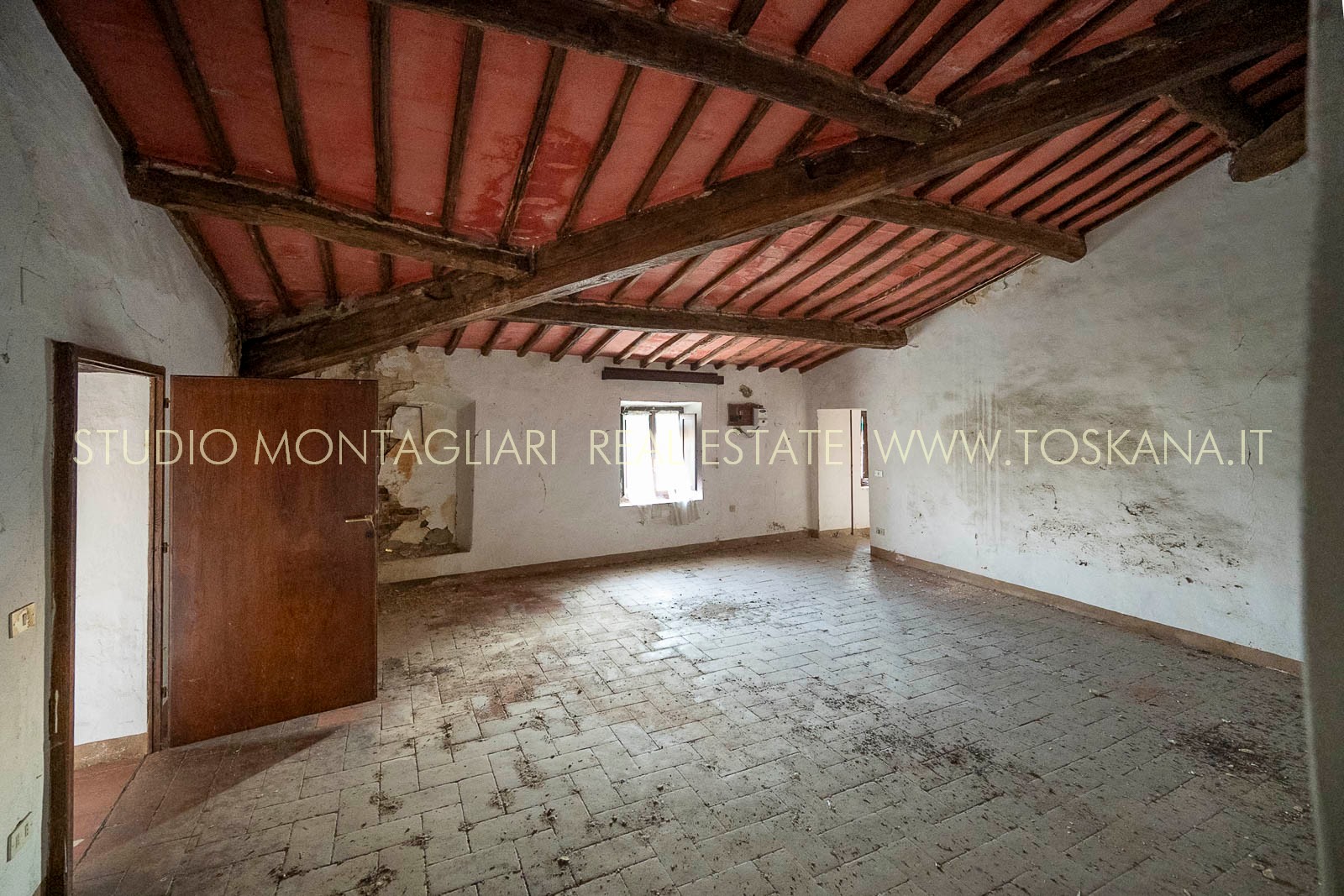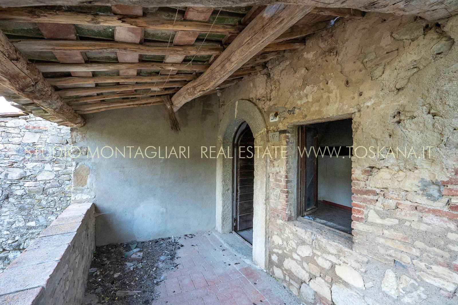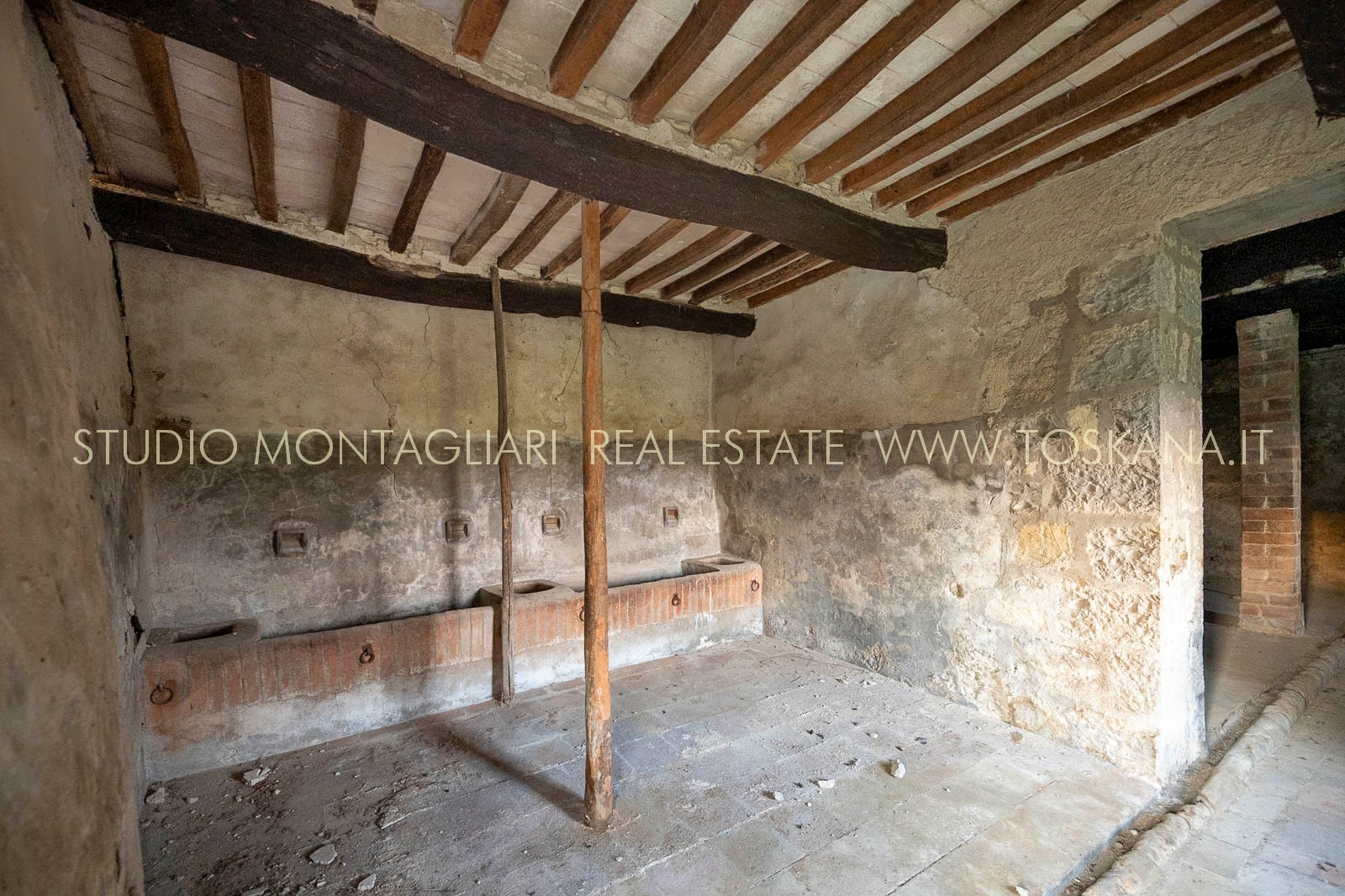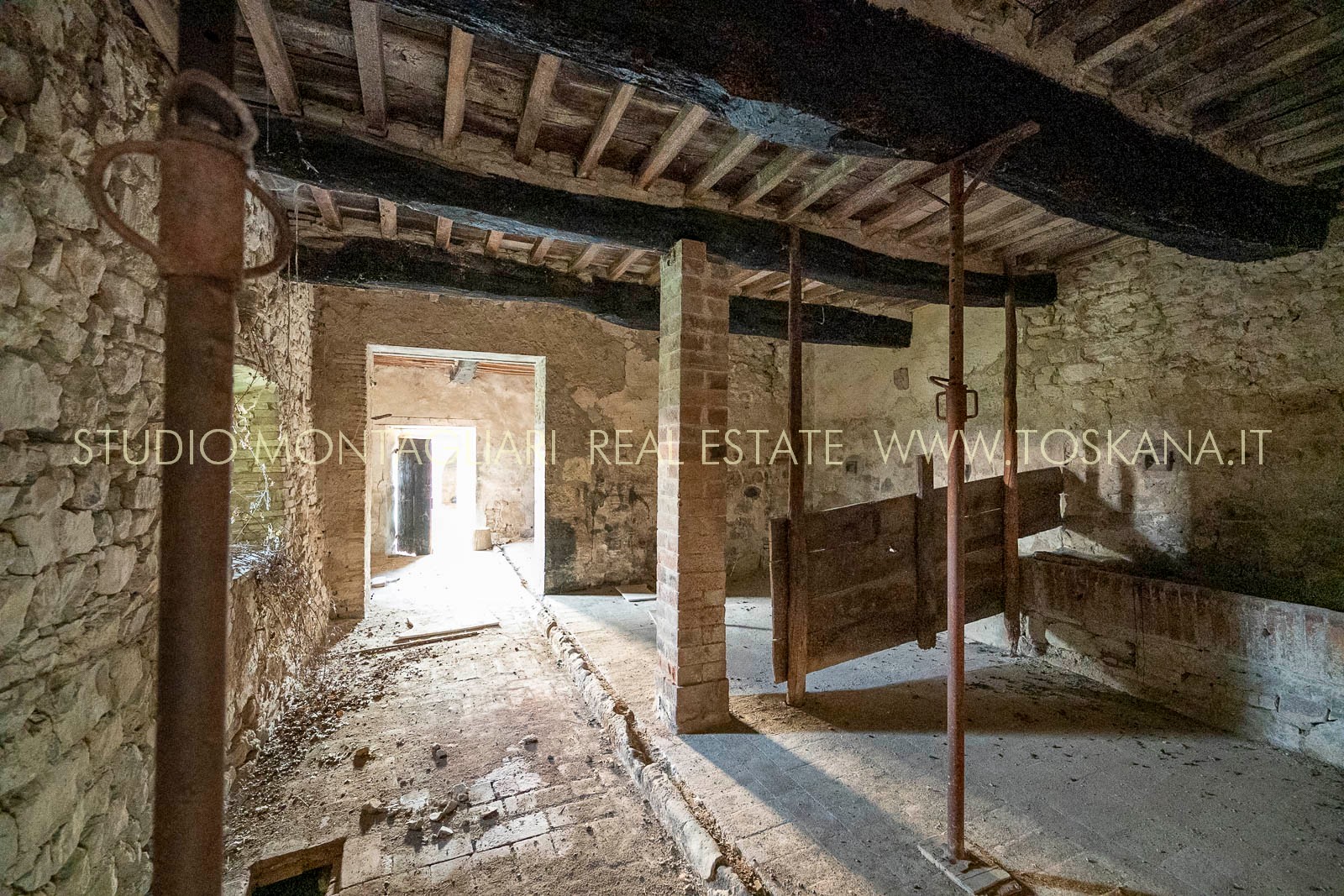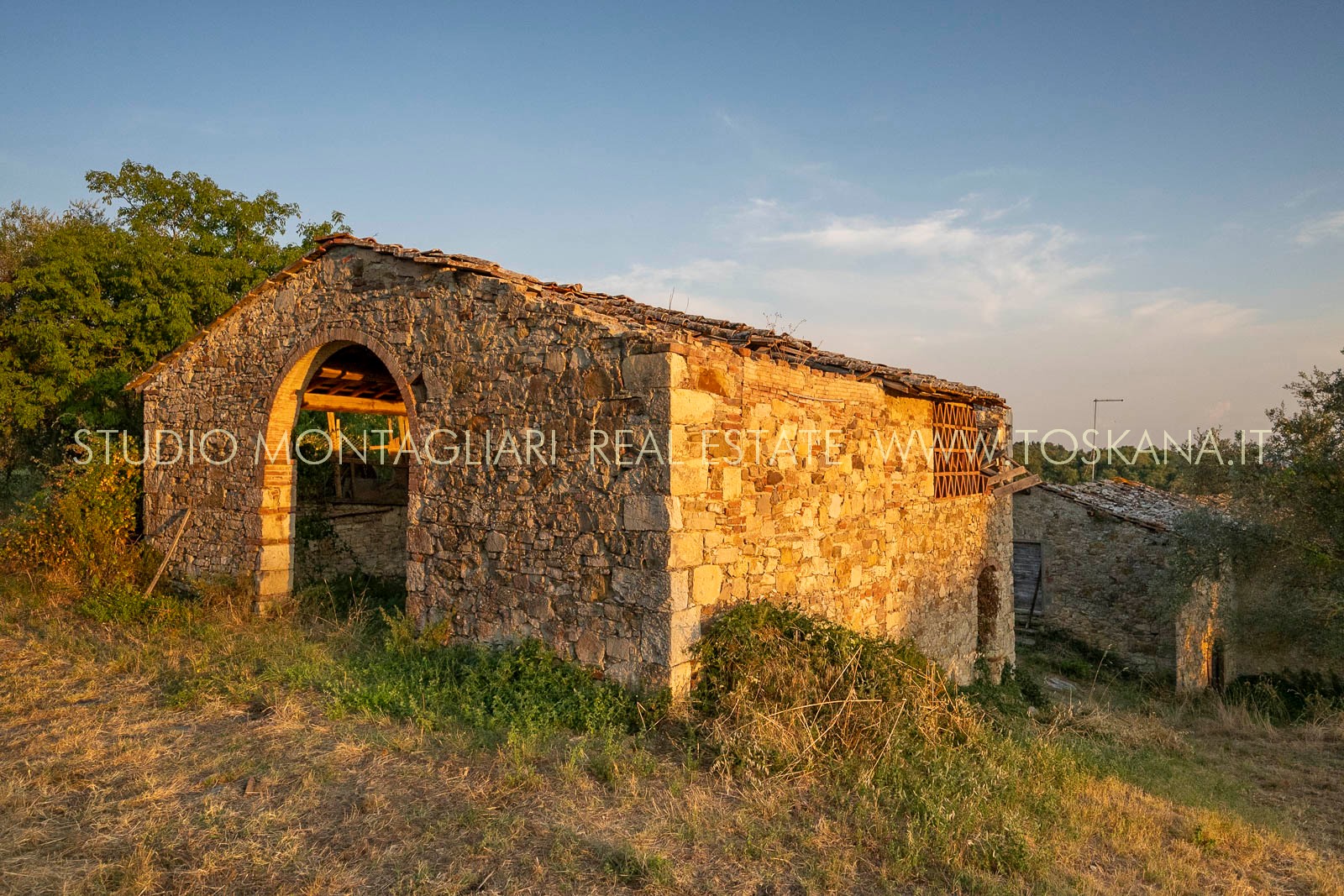 Questa tipica colonica in pietra, completamente da ristrutturare, si trova molto vicino alla famosa e affascinante cittadina di Castellina in Chianti. La proprietà è situata nel cuore di vigneti e uliveti, in una zona assolutamente tranquilla, alla fine di una strada sterrata privata. Dalla proprietà, ricca di fascino, si può godere di una magnifica vista verso sud, ovest e su San Gimignano. Il complesso è composto dalla casa padronale in pietra, con una superficie lorda di circa 630 metri quadrati, e da due annessi separati con superfici rispettivamente di 190 e 96 metri quadrati.