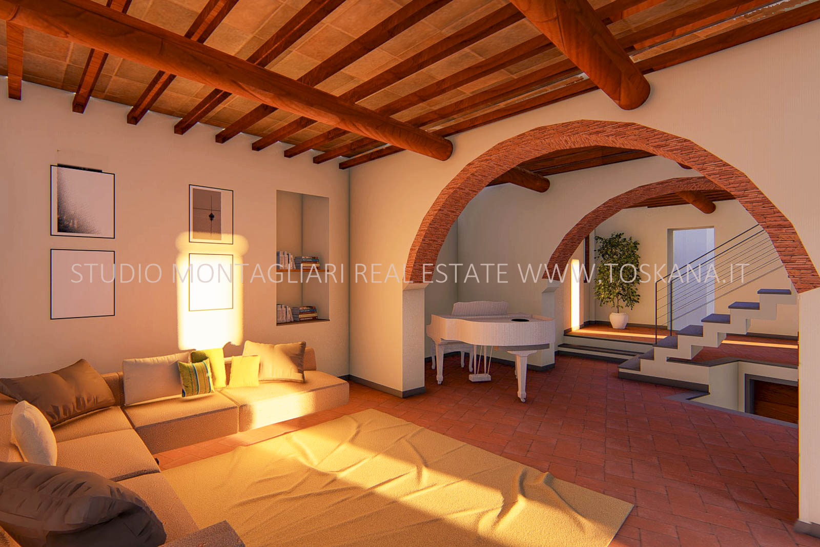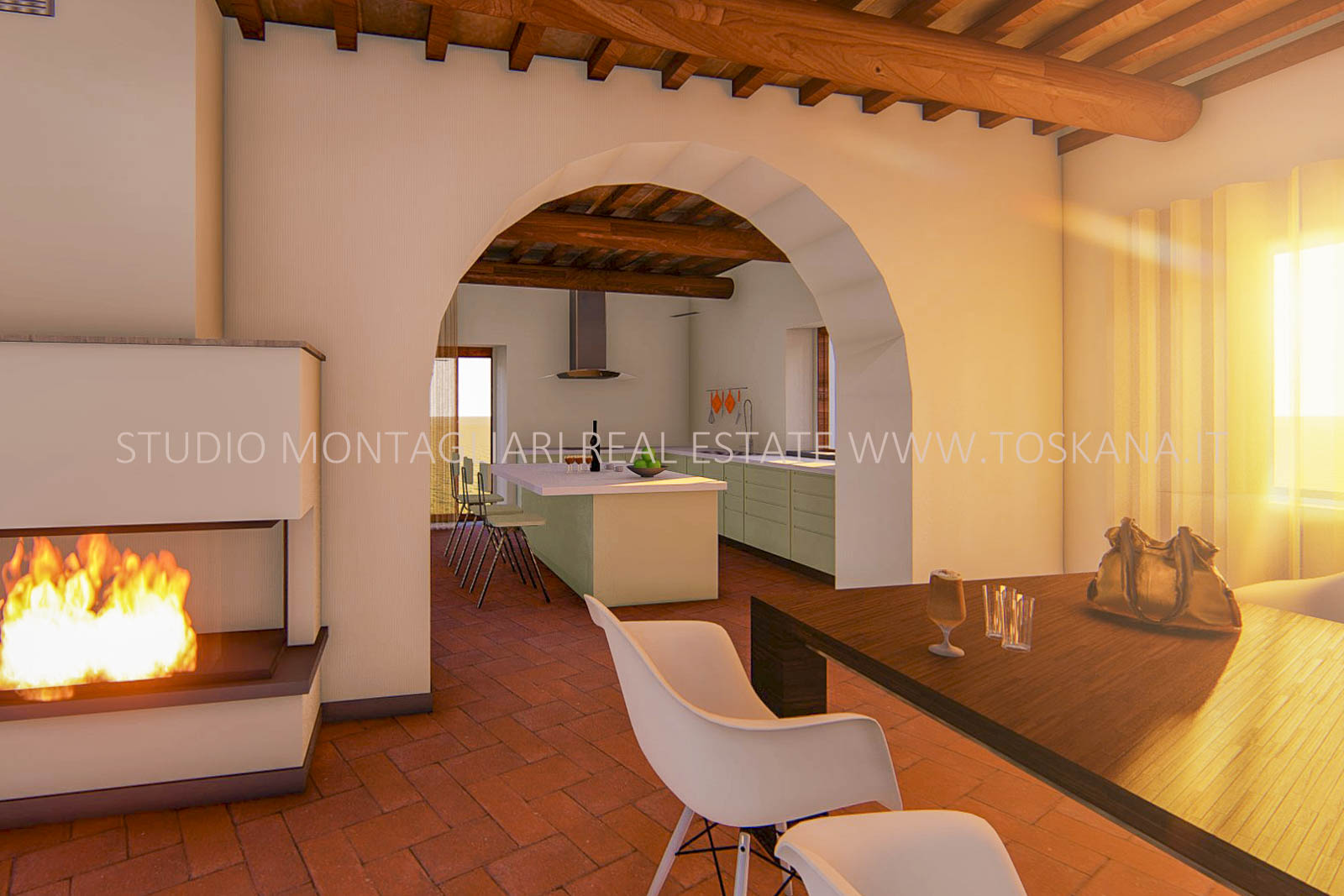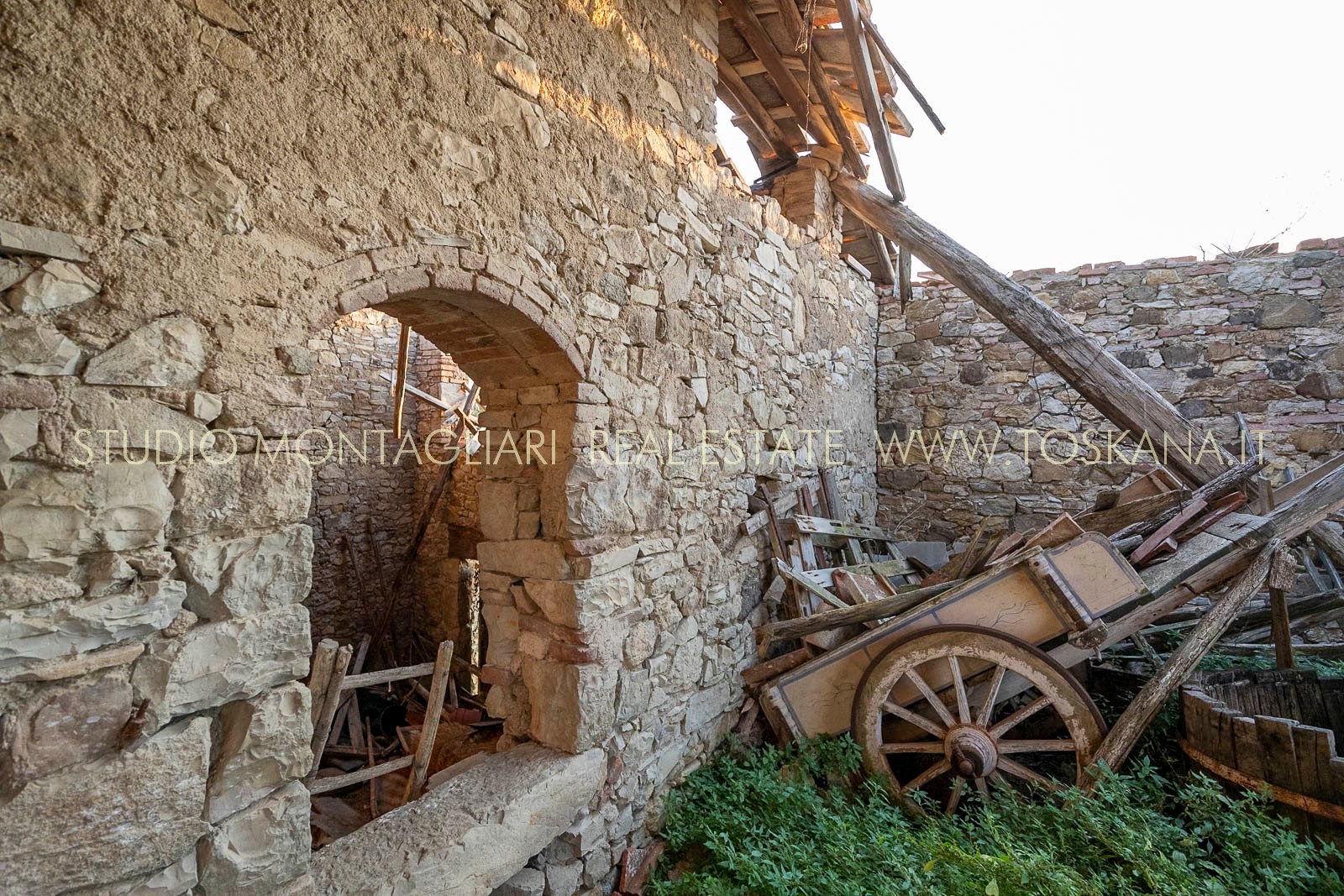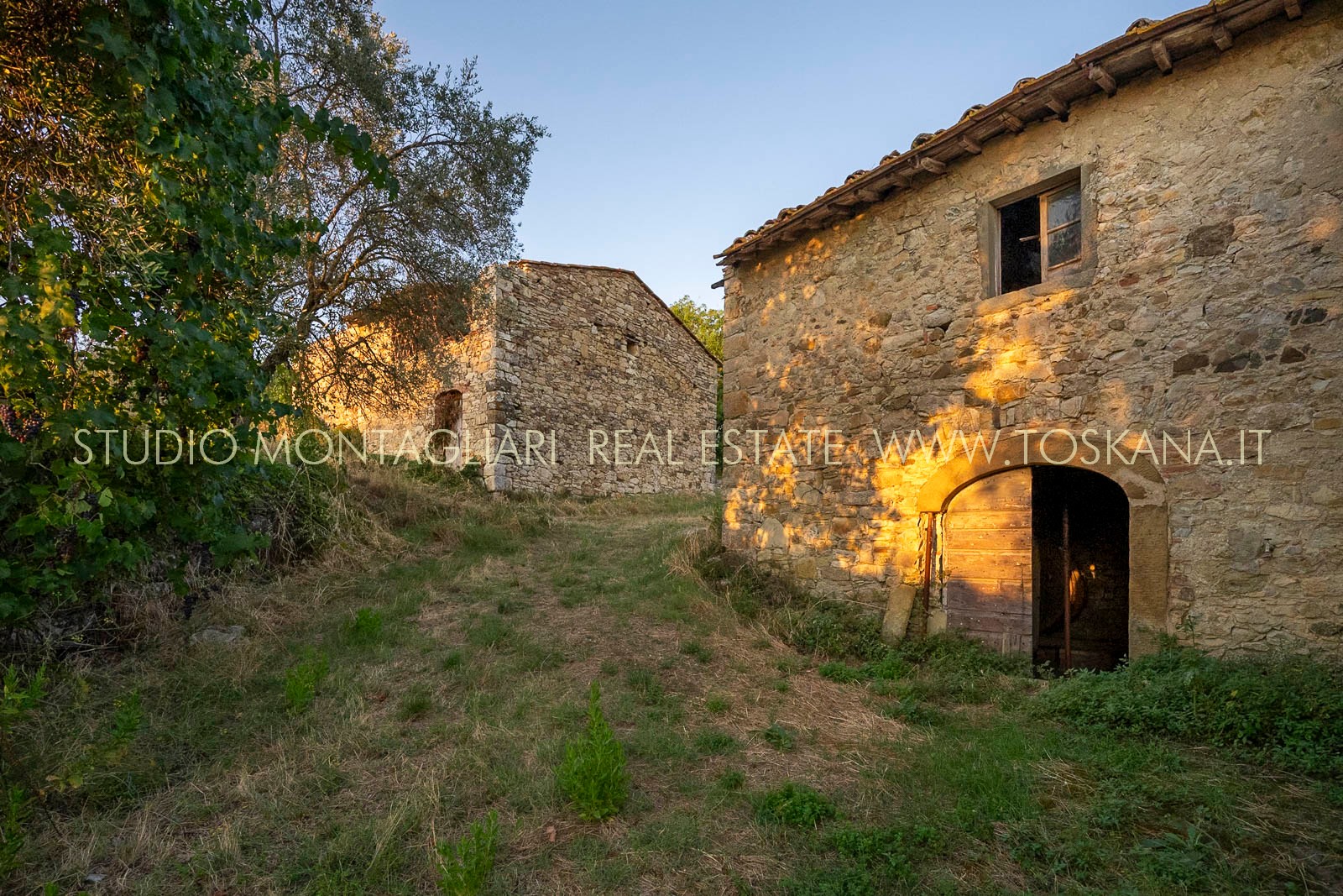 Questa tipica colonica in pietra, completamente da ristrutturare, si trova molto vicino alla famosa e affascinante cittadina di Castellina in Chianti. La proprietà è situata nel cuore di vigneti e uliveti, in una zona assolutamente tranquilla, alla fine di una strada sterrata privata. Dalla proprietà, ricca di fascino, si può godere di una magnifica vista verso sud, ovest e su San Gimignano. Il complesso è composto dalla casa padronale in pietra, con una superficie lorda di circa 630 metri quadrati, e da due annessi separati con superfici rispettivamente di 190 e 96 metri quadrati.
