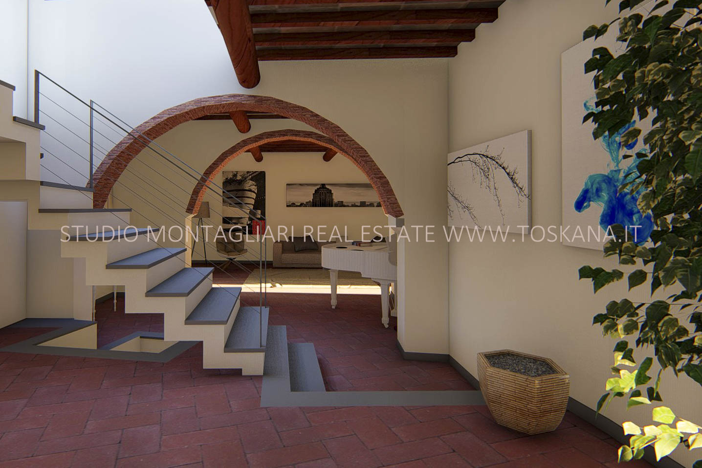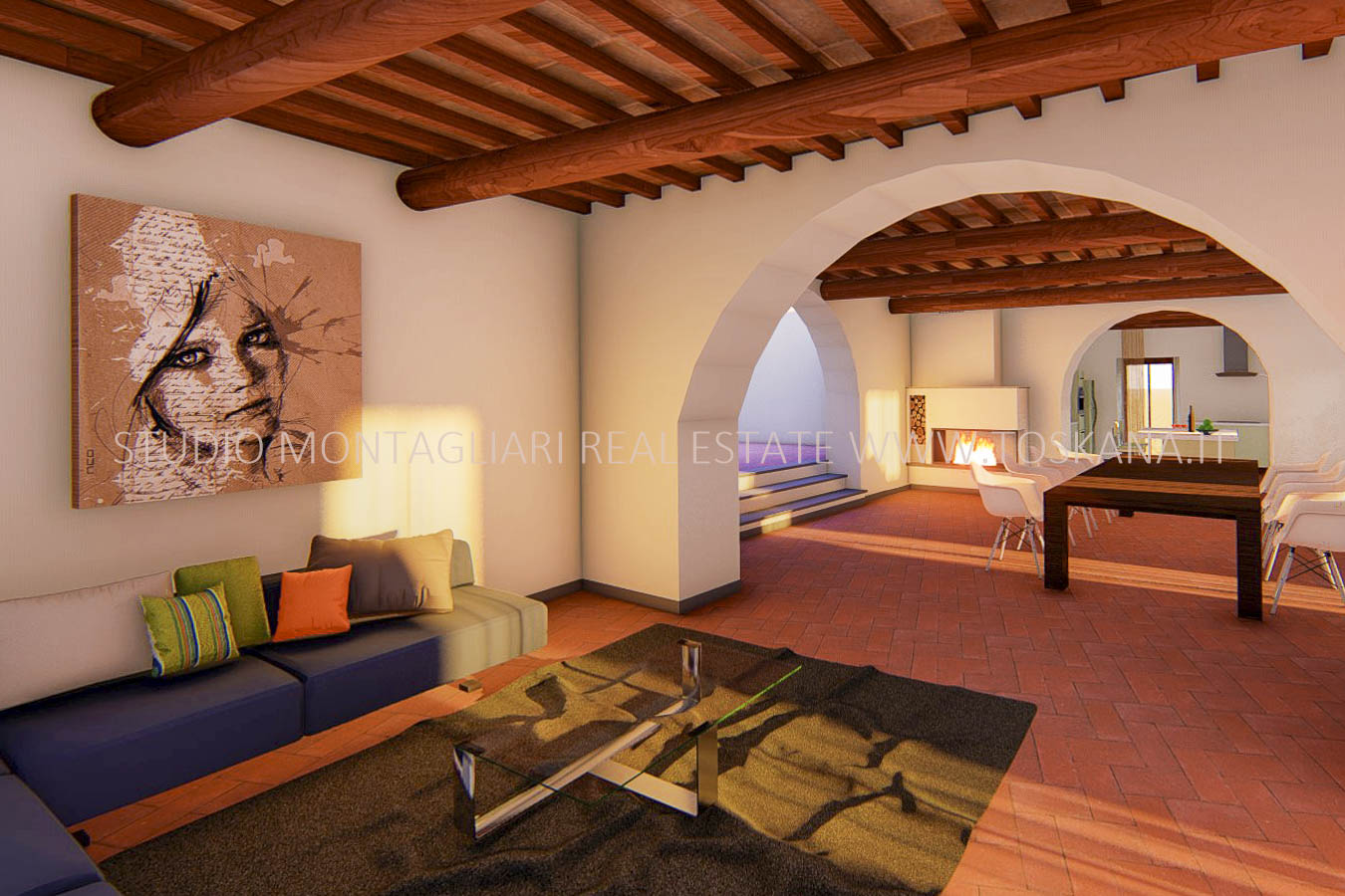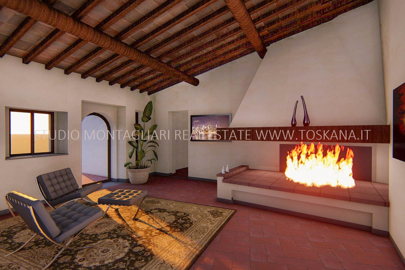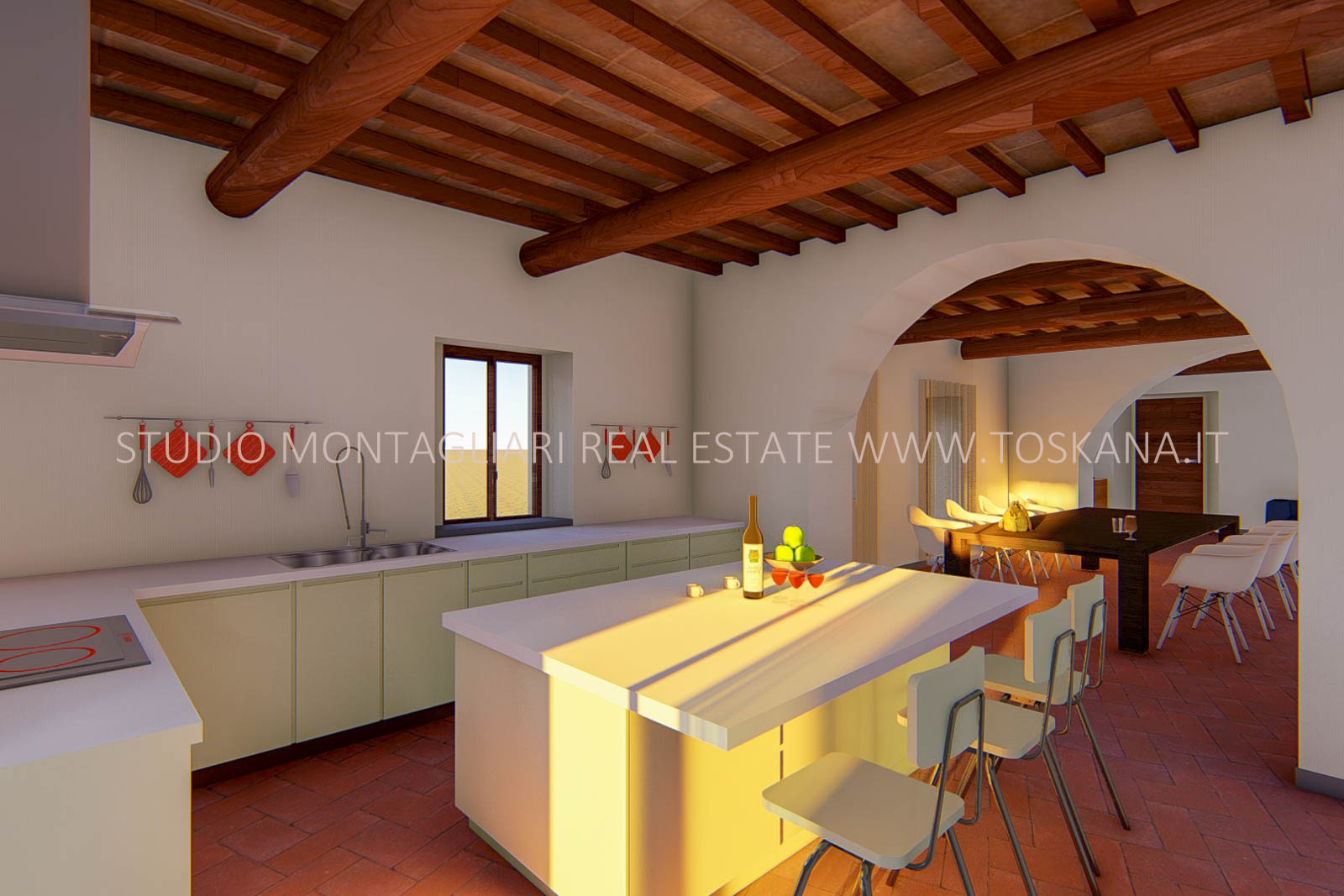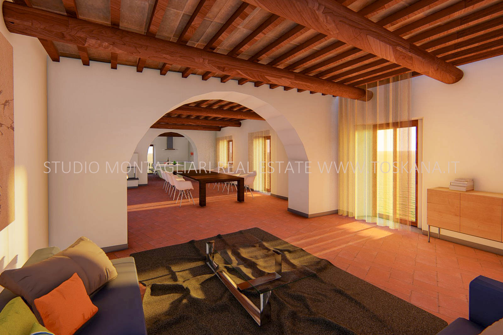 Questa tipica colonica in pietra, completamente da ristrutturare, si trova molto vicino alla famosa e affascinante cittadina di Castellina in Chianti. La proprietà è situata nel cuore di vigneti e uliveti, in una zona assolutamente tranquilla, alla fine di una strada sterrata privata. Dalla proprietà, ricca di fascino, si può godere di una magnifica vista verso sud, ovest e su San Gimignano. Il complesso è composto dalla casa padronale in pietra, con una superficie lorda di circa 630 metri quadrati, e da due annessi separati con superfici rispettivamente di 190 e 96 metri quadrati.