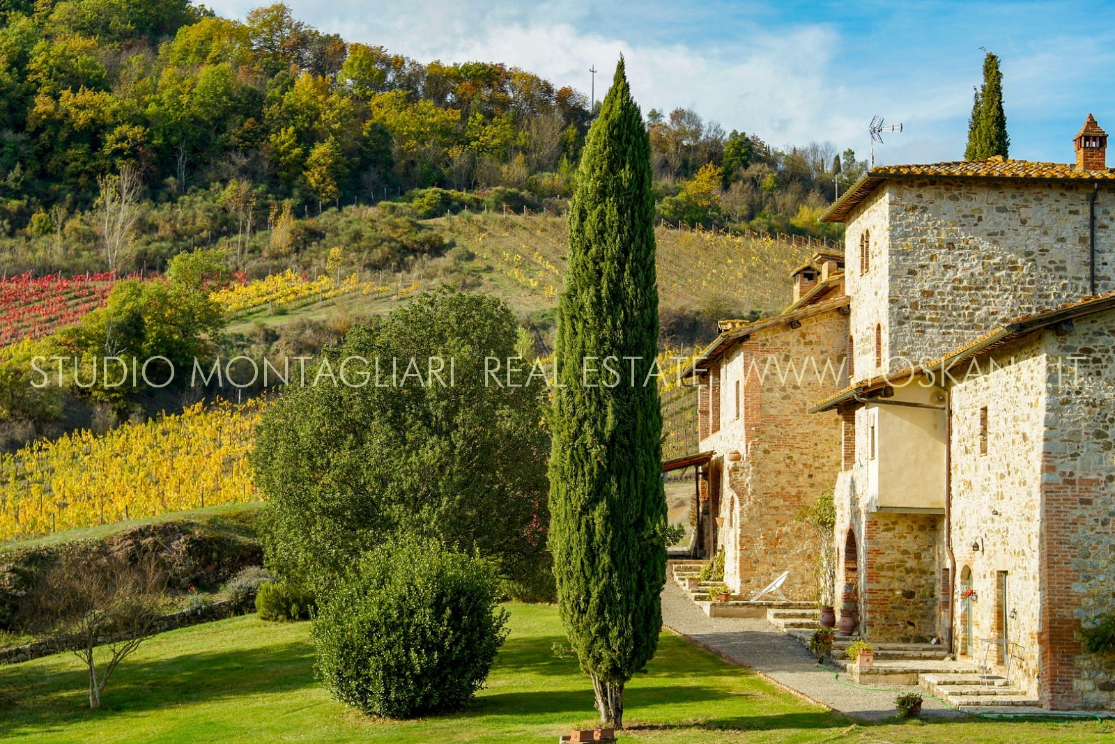 Il terreno, di complessivi 26 ettari è composto da 5,6 ha di vigneto IGT, uliveto e bosco. Attualmente è stato dato in lavorazione a terzi ma vi è la possibilità di costruire la propria cantina.