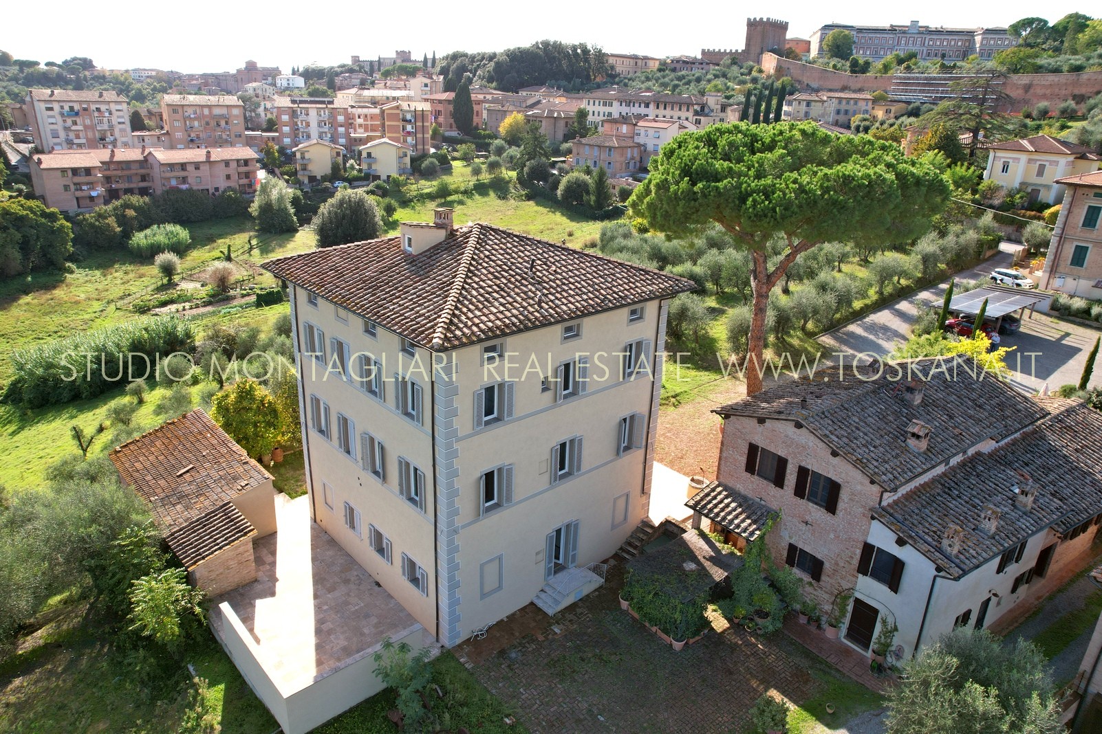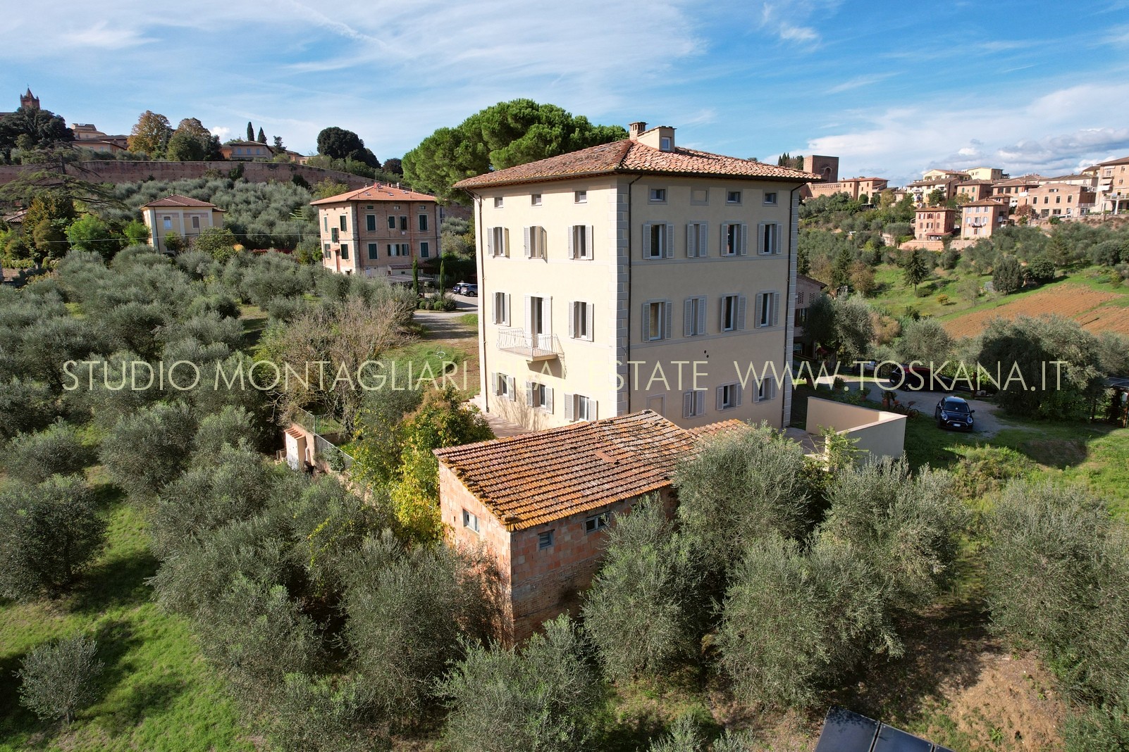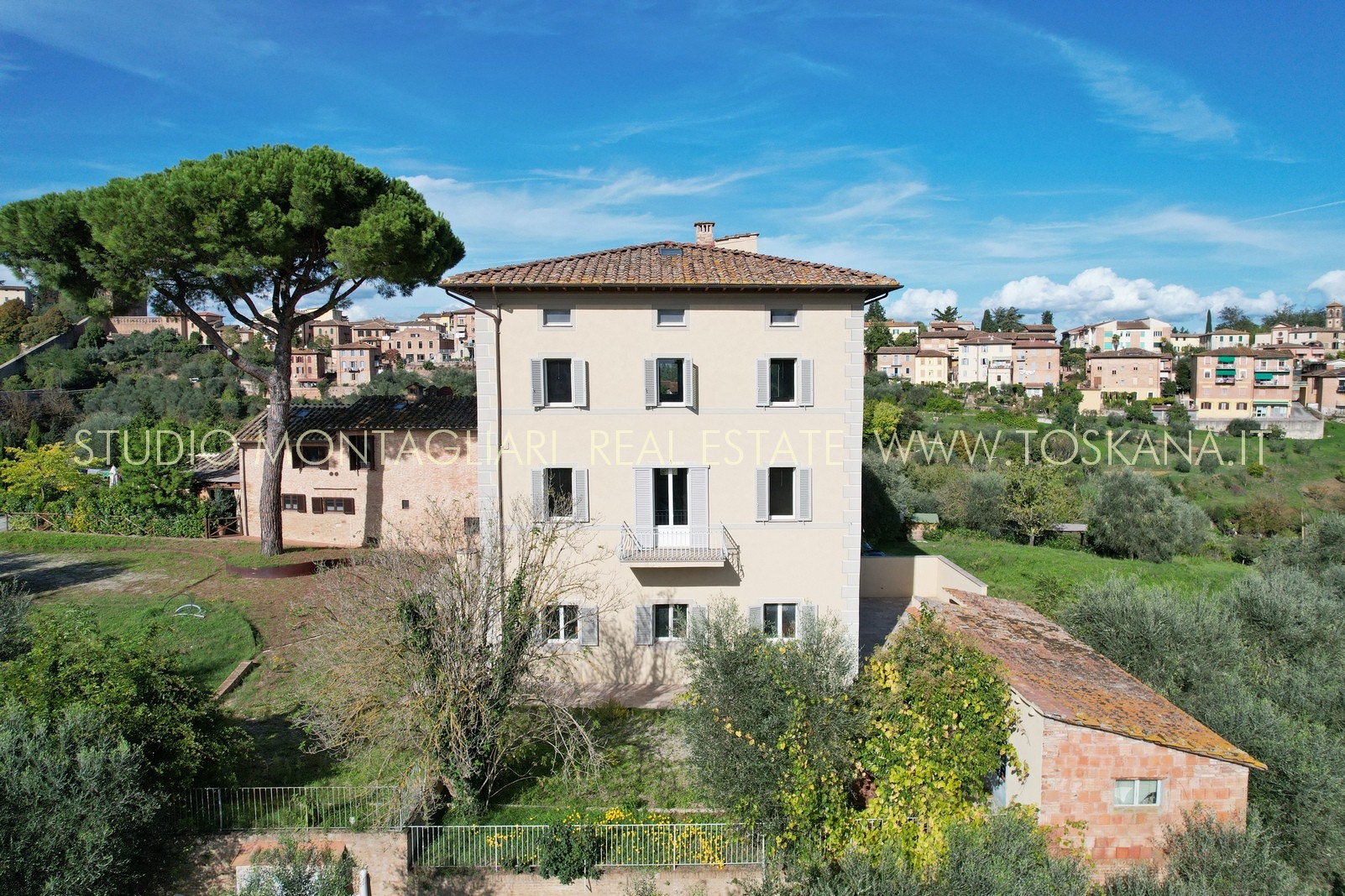 Villa indipendente all’interno di un piccolo borgo a due passi dal centro di Siena, completamente ristrutturata con ampio parcheggio, giardino con progetto approvato per realizzare la piscina. La proprietà si sviluppa su tre piani oltre mansarda, serviti da ascensore.
