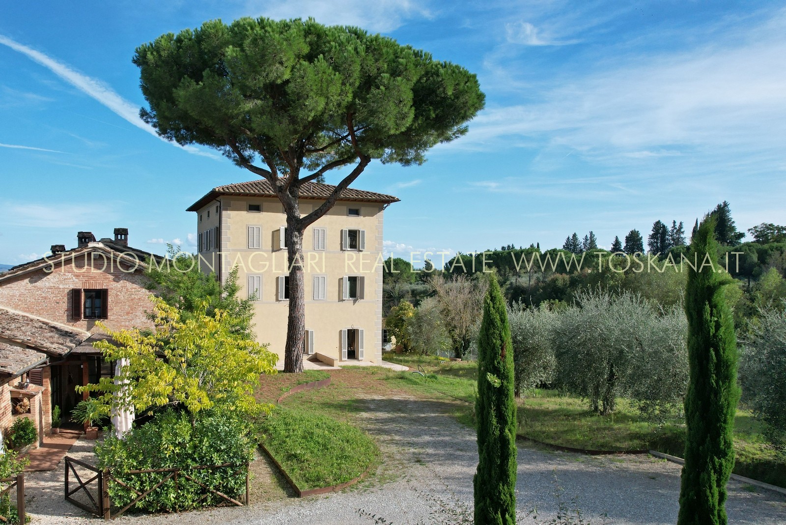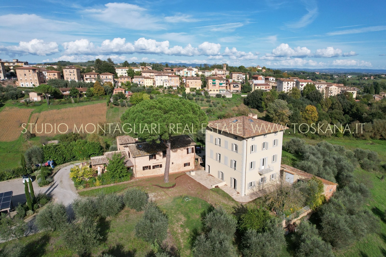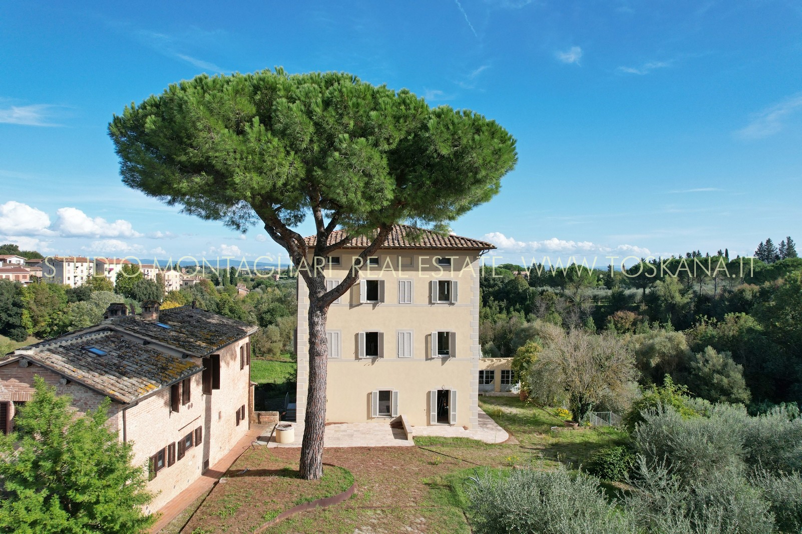 Villa indipendente all’interno di un piccolo borgo a due passi dal centro di Siena, completamente ristrutturata con ampio parcheggio, giardino con progetto approvato per realizzare la piscina. La proprietà si sviluppa su tre piani oltre mansarda, serviti da ascensore.