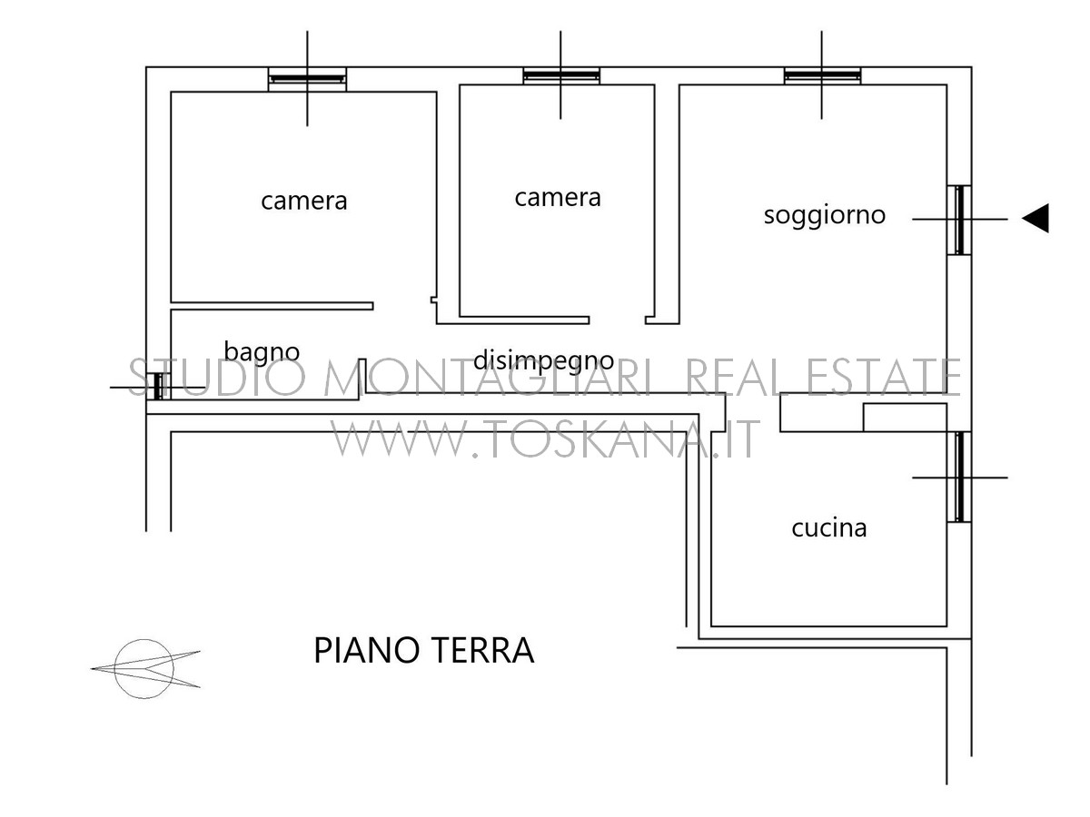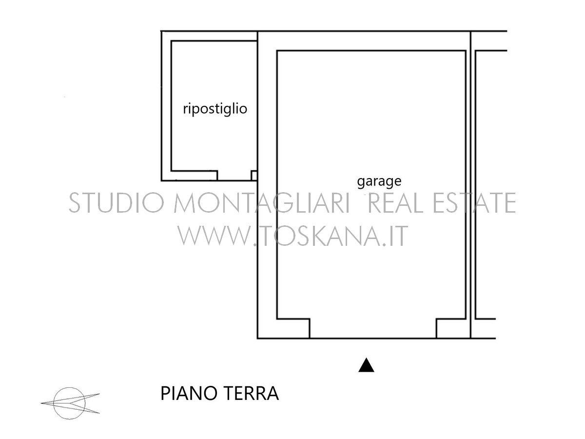 L’ingresso principale della villa è caratterizzato dalla scala centrale originale, il piano terra attualmente è composto da un ampio monolocale di 55 mq, con soffitto ad archi, ripostiglio-lavanderia e bagno. L’ingresso è autonomo con una comoda scala in travertino che affaccia sull'antica aia del borgo con un resede privato di 12 mq. Sempre al piano terra si trova un appartamento di 72 mq composto da ingresso soggiorno, cucina, camerina, camera e bagno, attualmente in fase di ultimazione di ristrutturazione. Esiste la possibilità di unire le due unità per creare una abitazione di 127 mq.