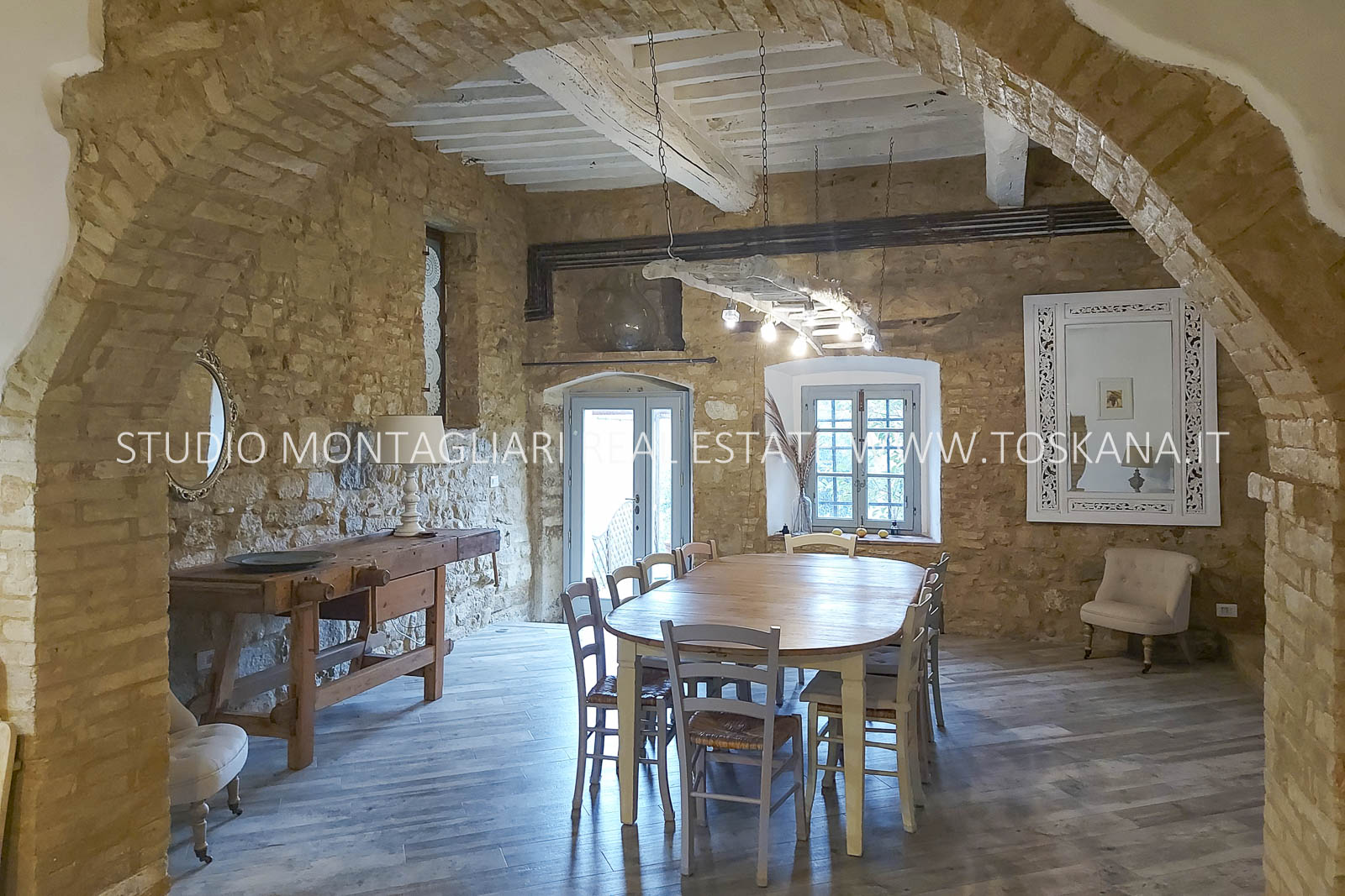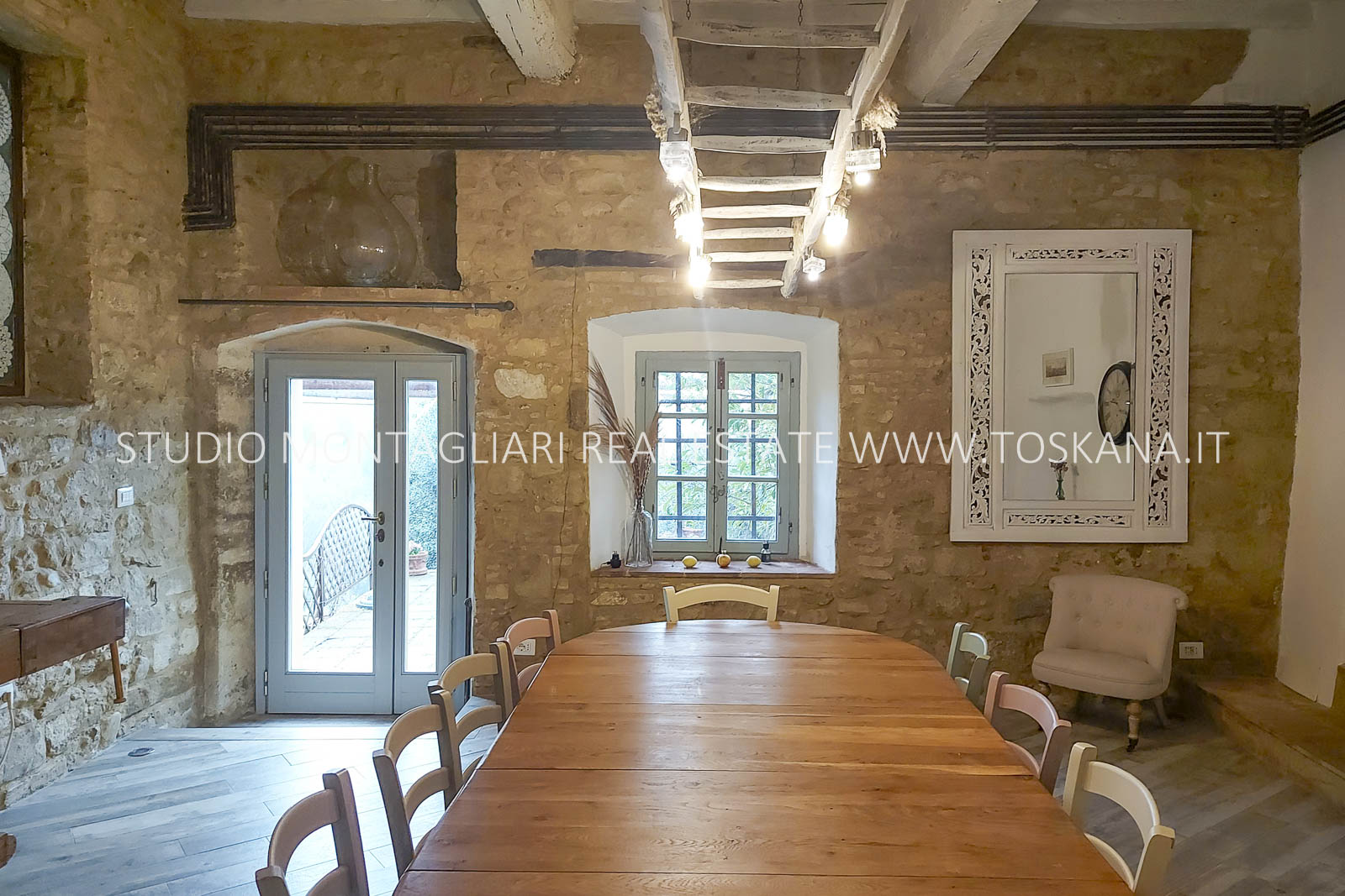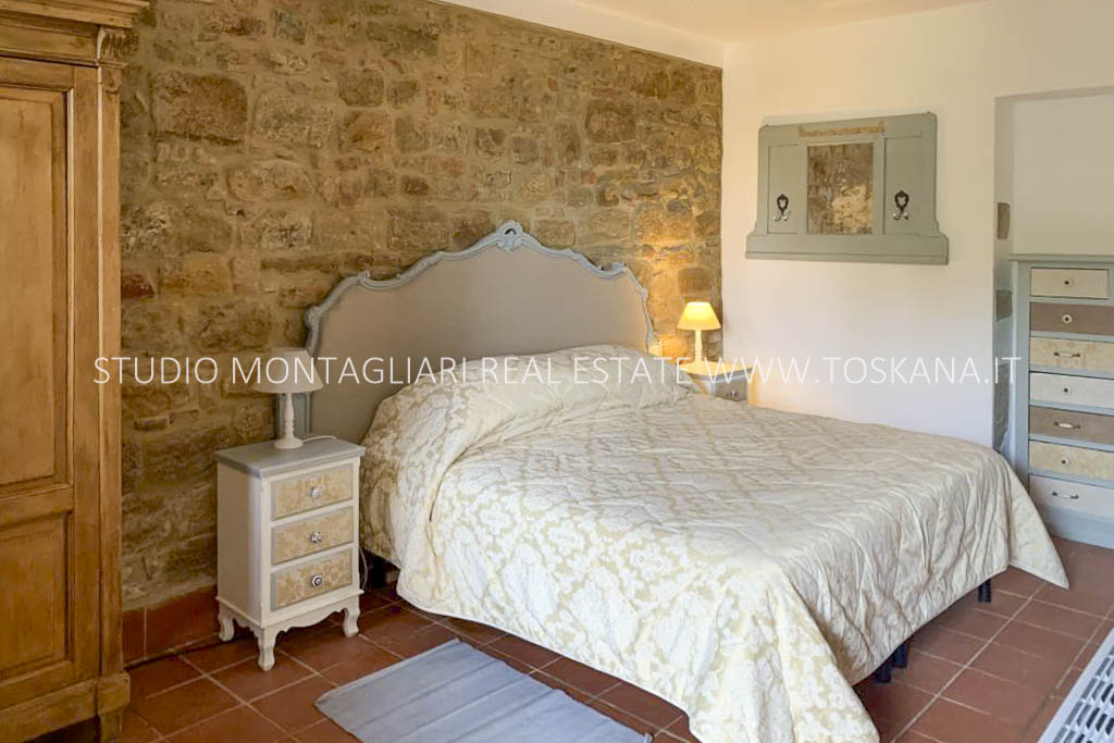 La proprietà, con una superficie di circa 540 mq, si sviluppa su due livelli e conserva affascinanti elementi storici, come i camini in pietra e l’antico forno, che creano un’atmosfera accogliente e raffinata. Il piano terra è composto da un ampio soggiorno con camino, un disimpegno con antico forno, una grande cucina, una sala da pranzo, un bagno di servizio e uno studio/camera da letto con bagno privato. Il primo piano ospita un elegante soggiorno con camino e 5 camere matrimoniali, tutte con bagno en suite, garantendo il massimo comfort e totale privacy. Inoltre, è presente una piccola cantina interrata, perfetta per vini e prodotti locali.