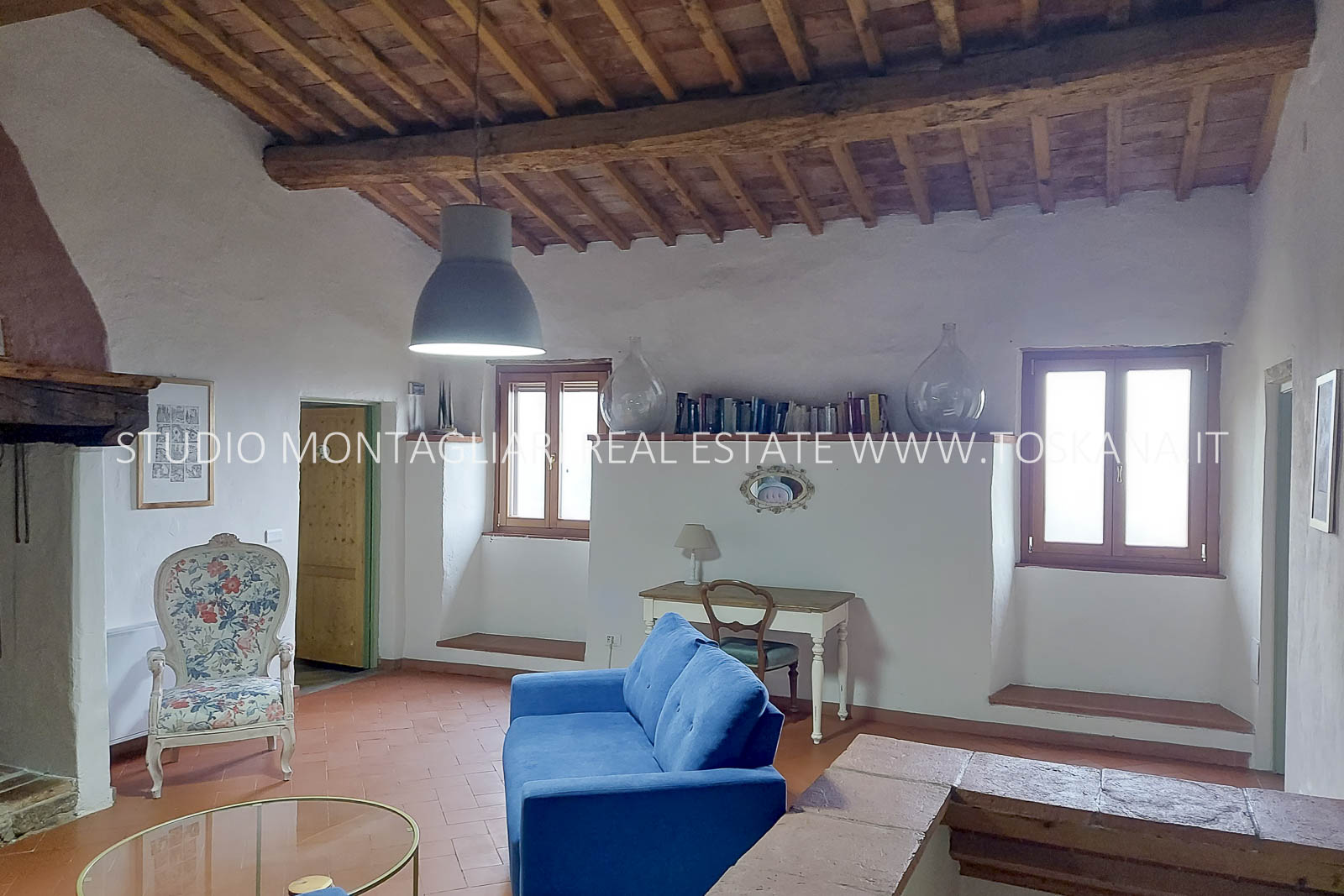 La struttura si presenta in ottime condizioni, con interventi mirati che hanno preservato l’autenticità del casale valorizzandone al contempo funzionalità e comfort. I pavimenti in cotto, le travi in legno, i camini originali e i materiali tradizionali conferiscono un fascino senza tempo.
