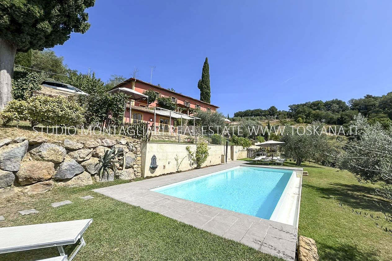 Gli edifici sono circondati da un ampio giardino privato di circa 4.100 mq con 61 ulivi ed una piscina panoramica a sfioro che si affaccia sulla valle, regalando momenti di relax immersi nella natura.